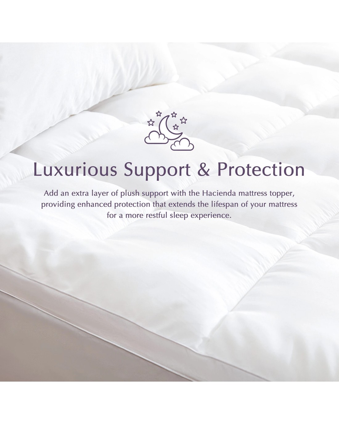 Designed to regulate temperature, the bamboo blend naturally wicks away moisture and provides a cooling effect, keeping you comfortable all night long. Whether you're looking to refresh an older mattress or add an extra layer of plush support, the Hacienda topper delivers luxurious comfort and protection for a restful sleep experience.