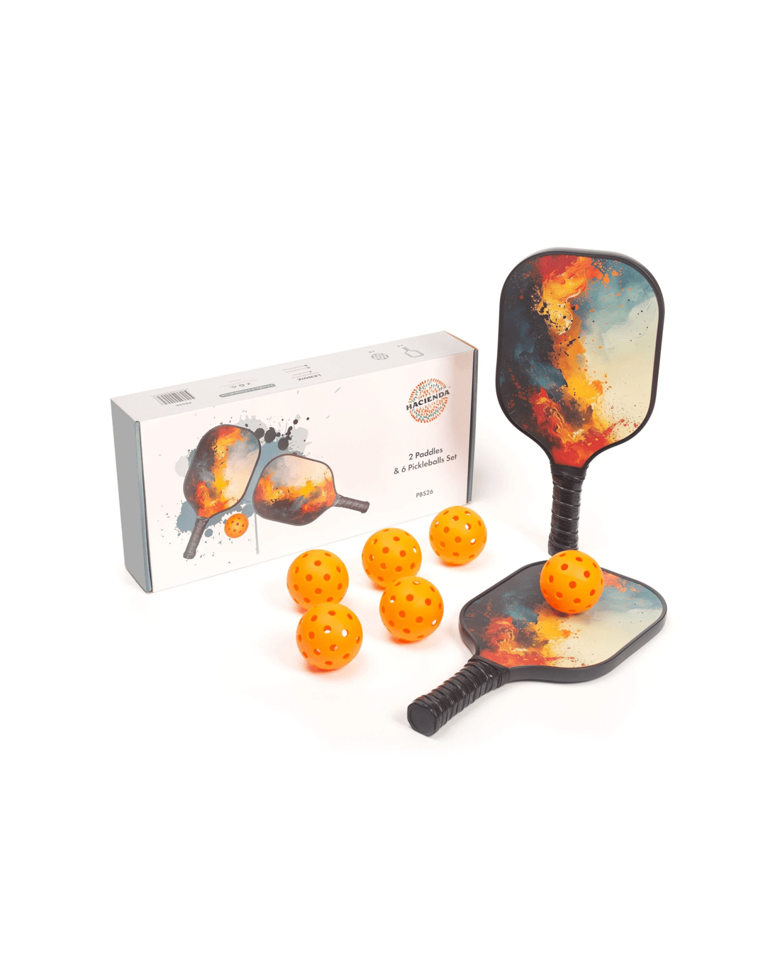 Hacienda Pickleball Set with 6 Aerodynamic Balls and 2 Fiberglass Paddles