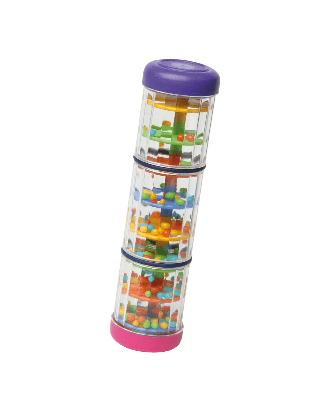 The Halilit Mini Rainmaker has a bright, cylindrical design that makes it appealing to early learners. It makes a rattling, rain-like sound when shaken or inverted.