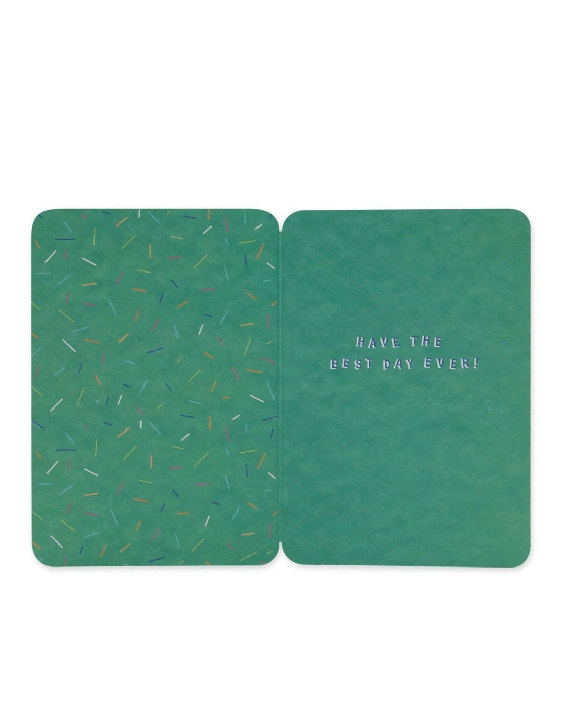 • The inside of the card features an illustration of colourful confetti alongside the message 'HAVE THE BEST DAY EVER!'