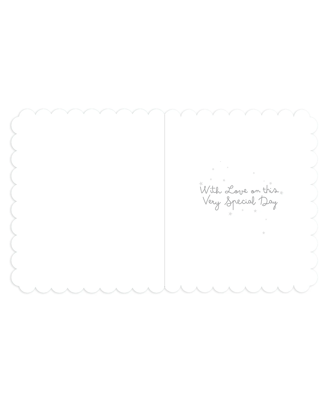 • The inside of the card features scalloped borders, illustrations of stars and the message 'With Love on this Very Special Day'