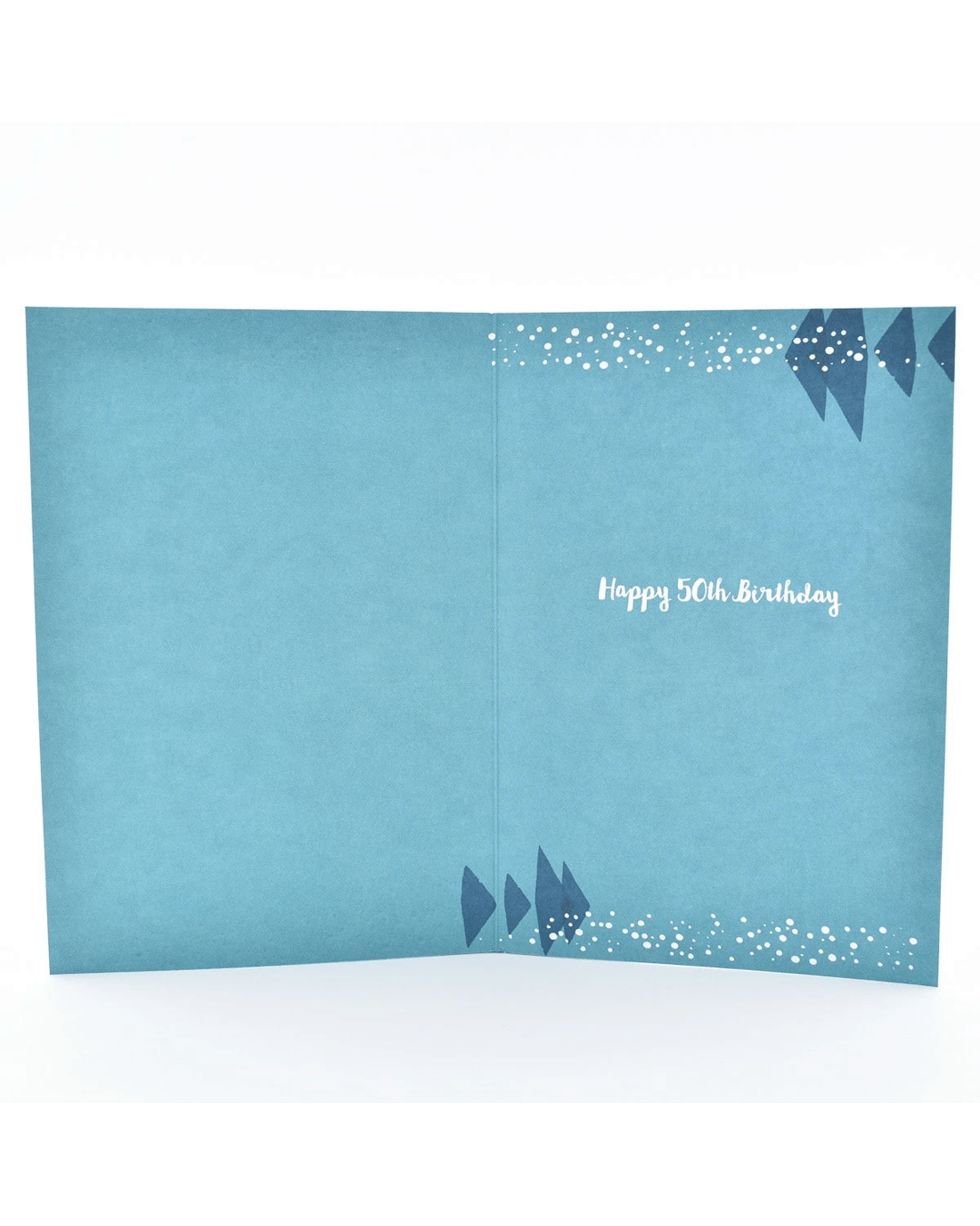 • The inside of the card is textured and features illustrations of spots and shapes with the message: 'Happy 50th Birthday'