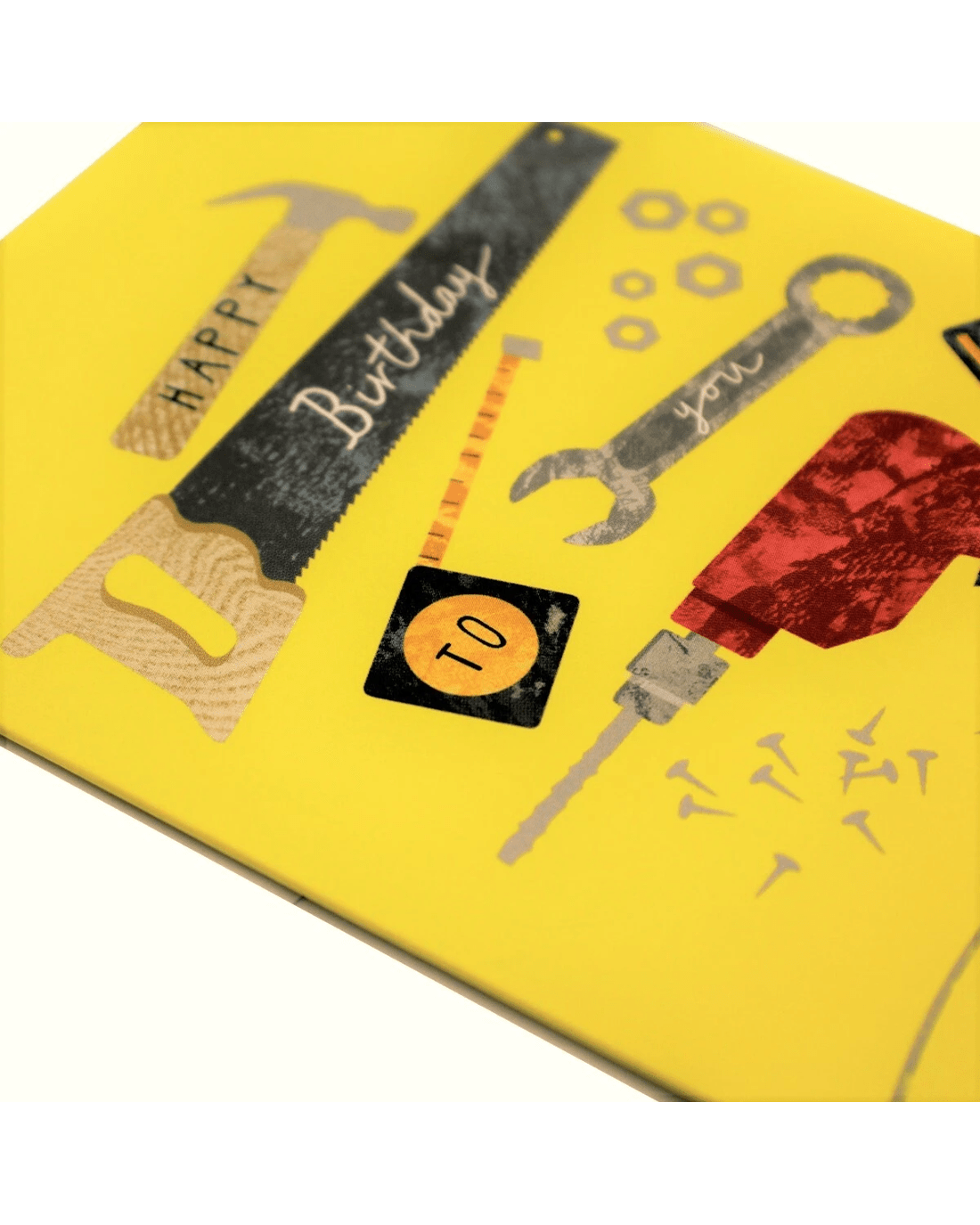 • The front features an image of tools with the message 'Happy birthday to you'