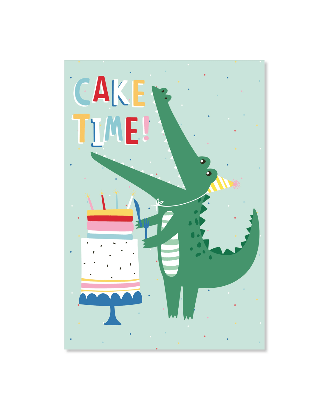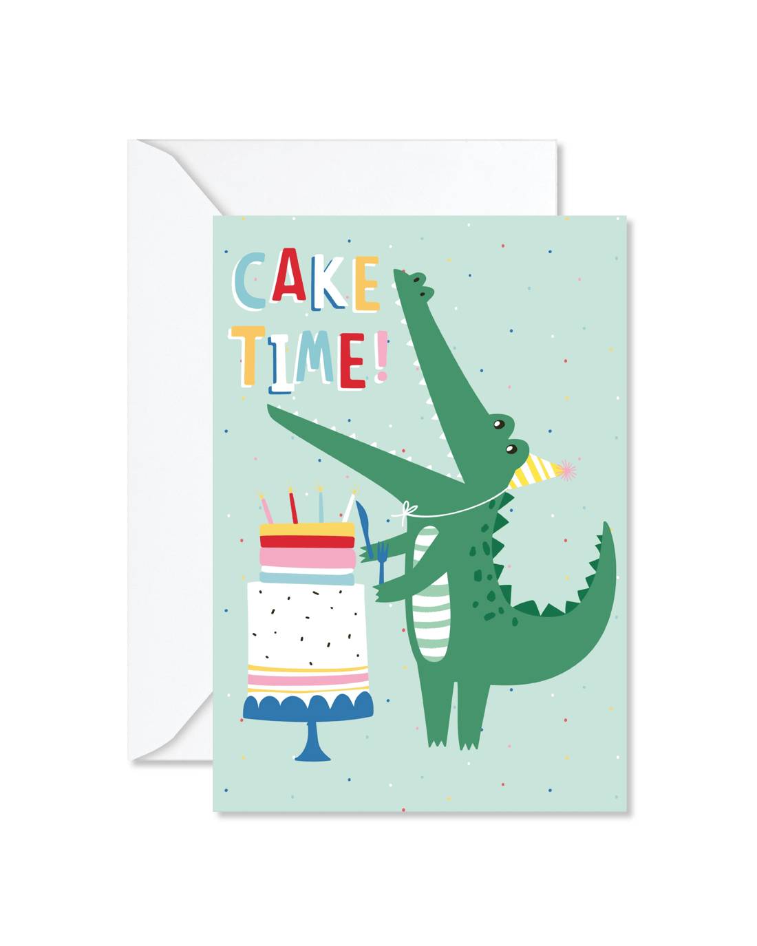 • The front of the card features the message 'Cake time'