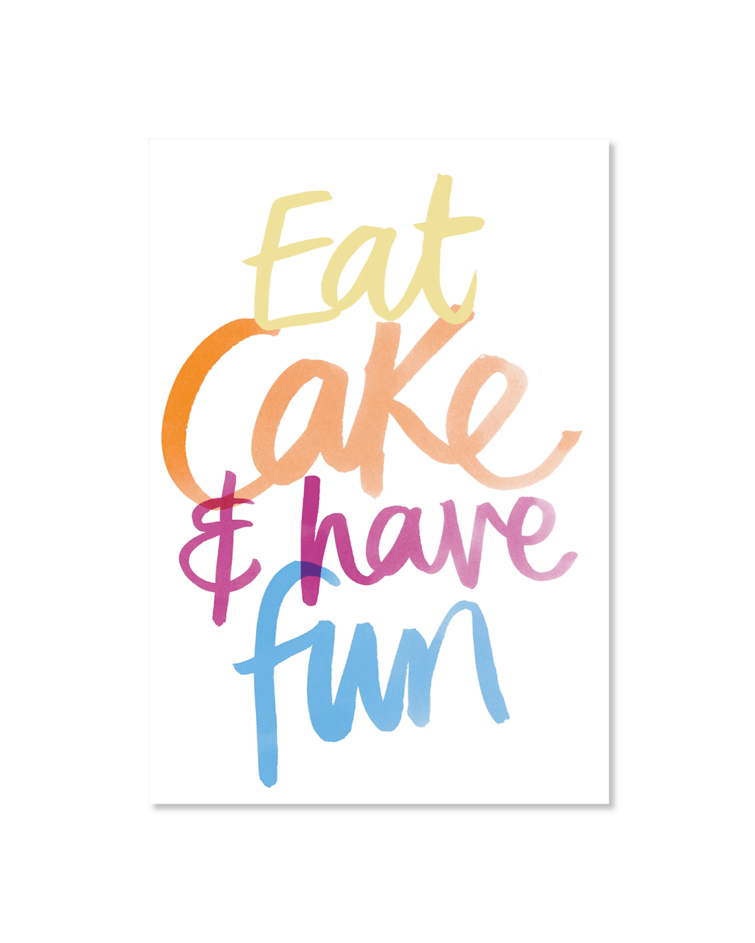 • The front of the card features the message, 'Eat Cake & have fun'