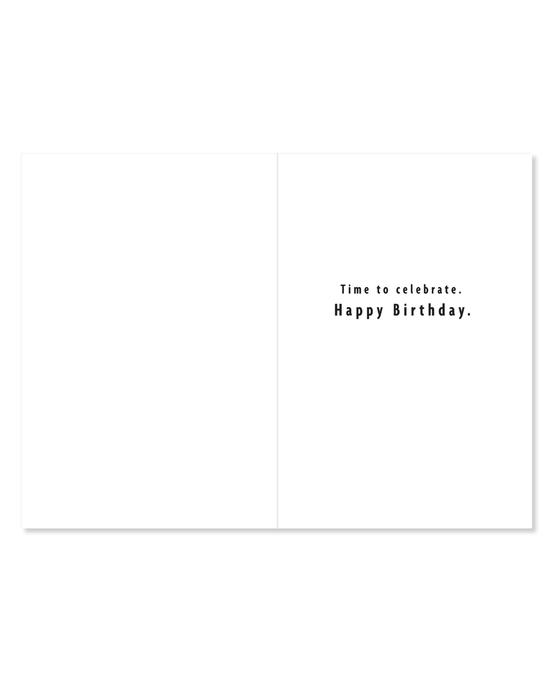 • The inside of the card features the message, 'Time to celebrate. Happy Birthday.'