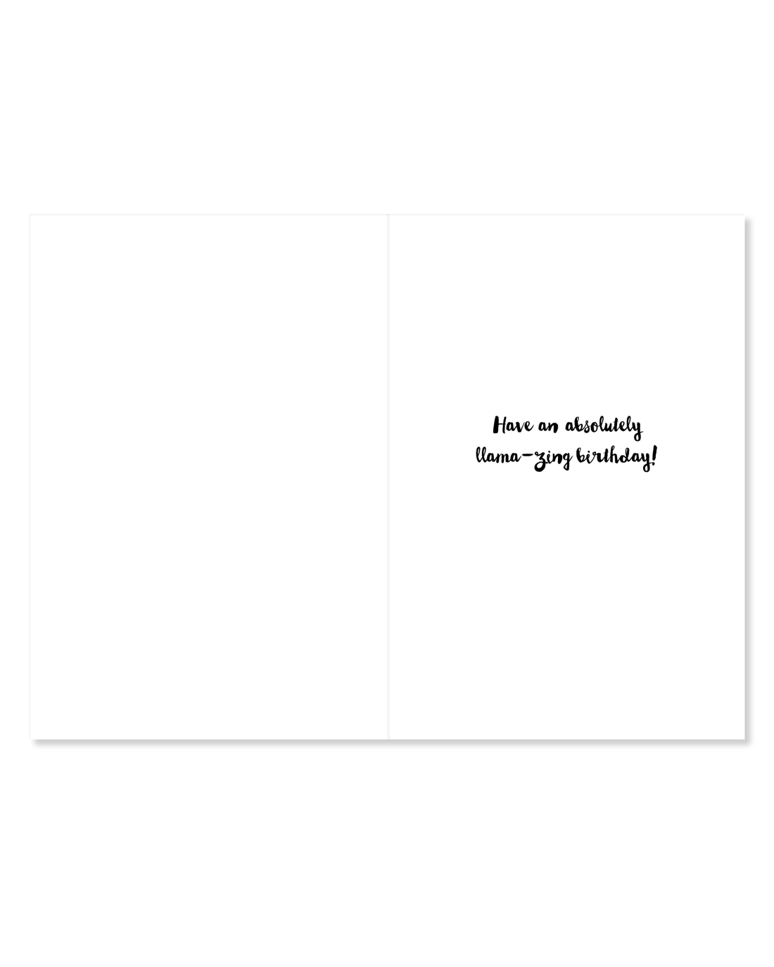 • The inside of the card features the message, 'Have an absolutely llama-zing birthday!'