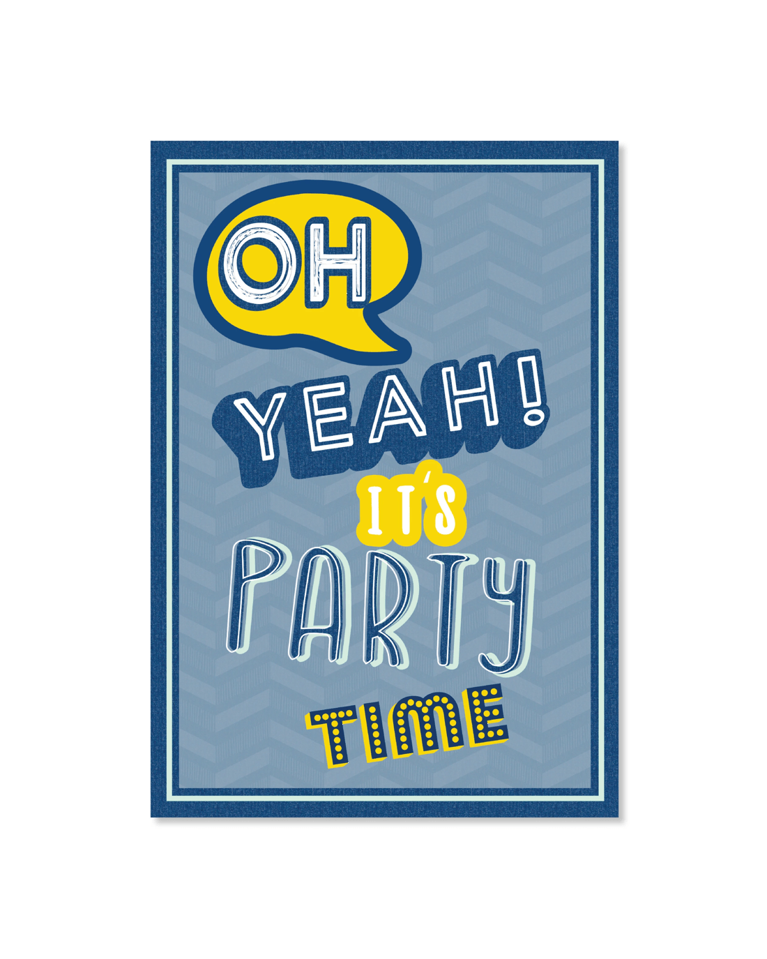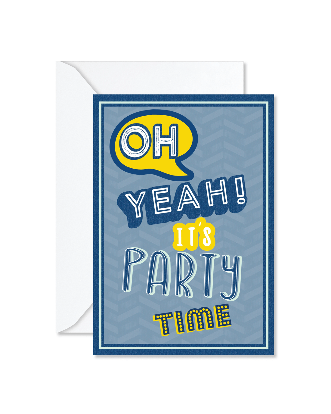 • The front of the card features the message, 'OH YEAH! IT'S PARTY TIME'