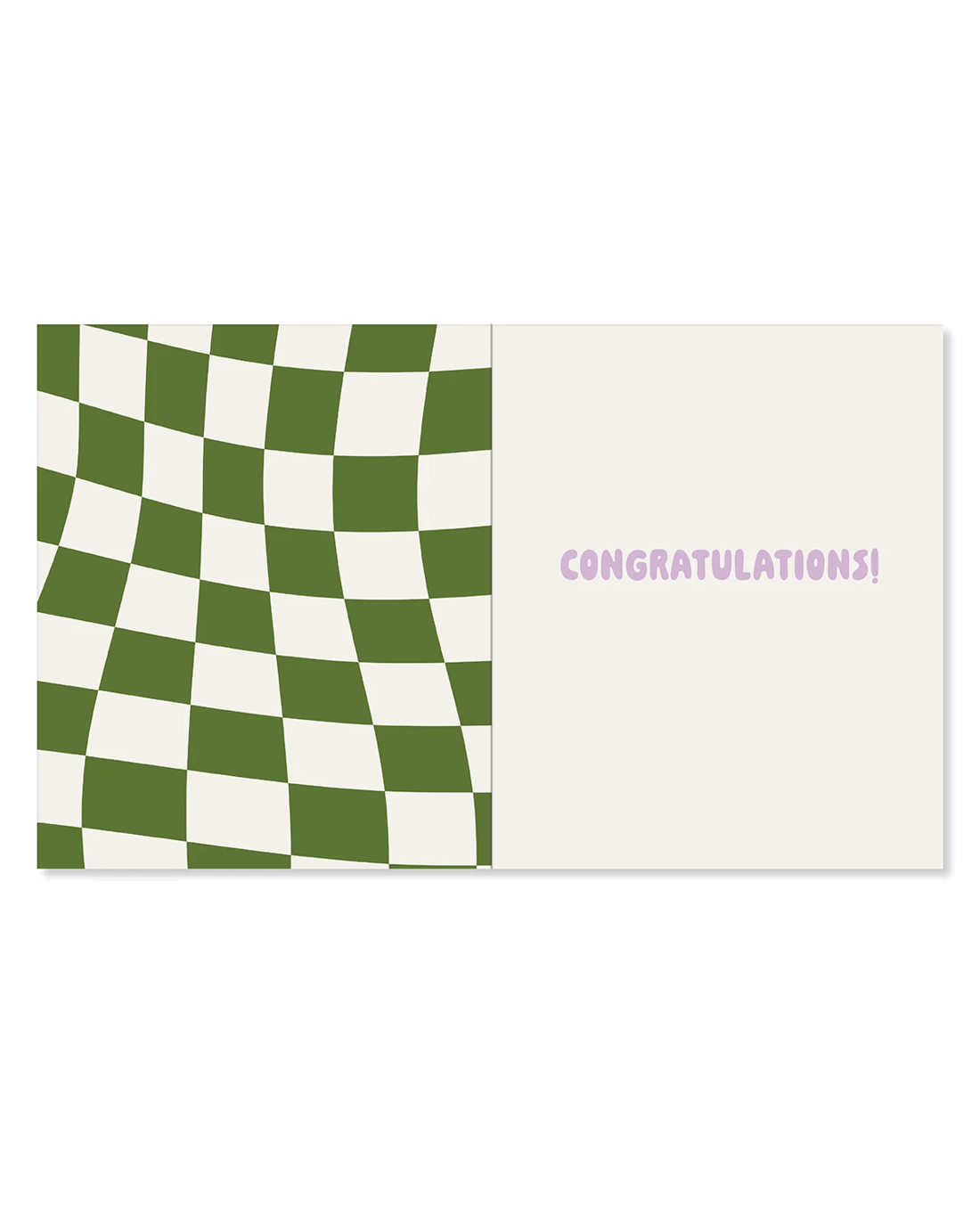 • The inside of the card features a green and white checkered illustration alongside the message 'CONGRATULATIONS'