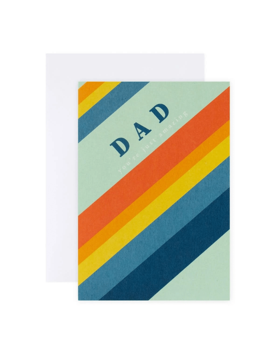 • The front of the card is illustrated with colourful stripes alongside the message 'DAD you're just amazing'