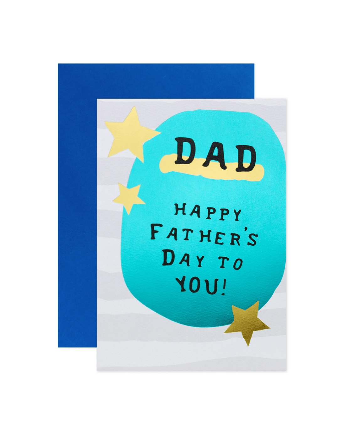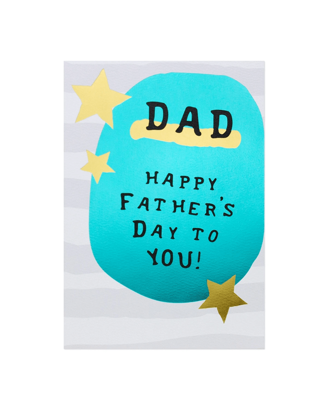• The front of the card features gold foil highlights, illustrations of stars, and the message 'DAD HAPPY FATHER'S DAY TO YOU!'