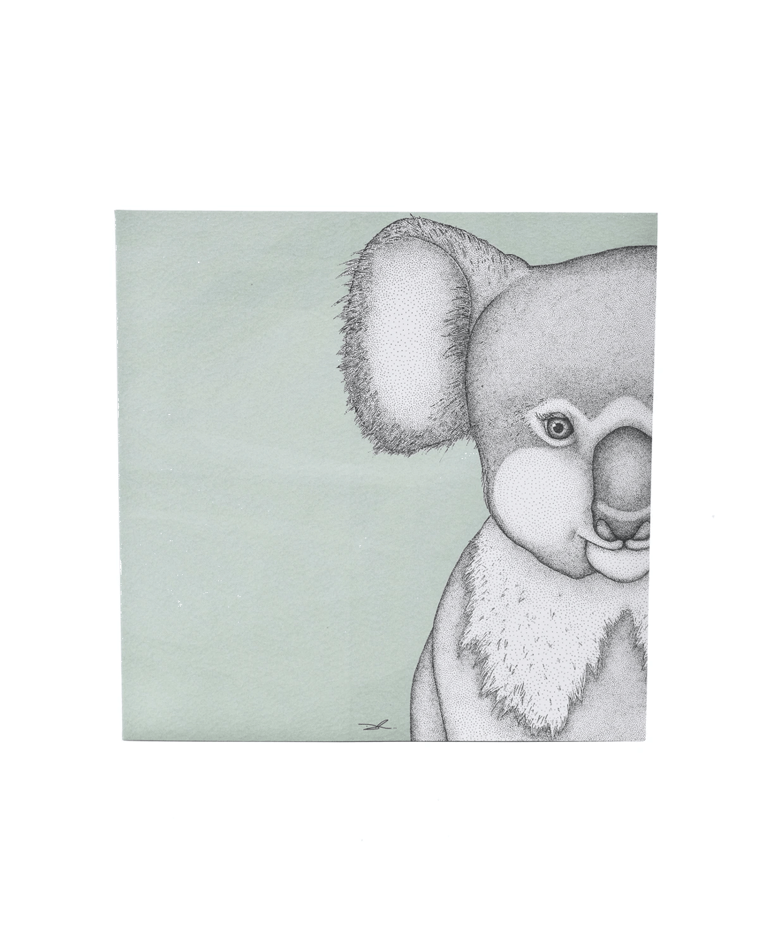 • The front of the card features a stunning illustration of a koala made entirely of dots on a green coloured background
