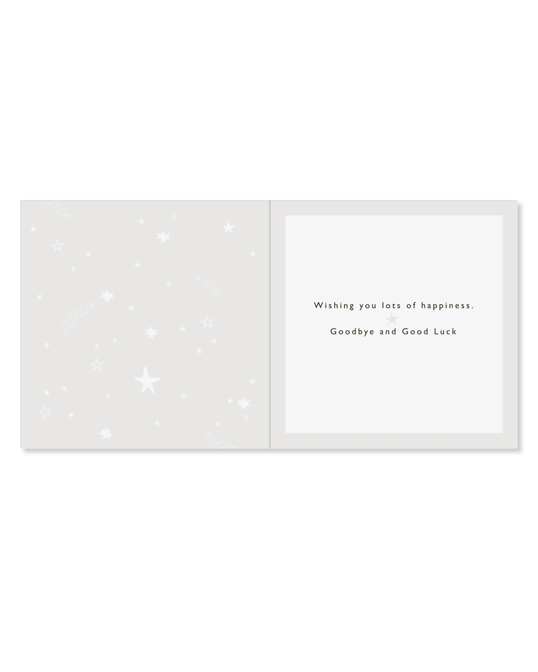 • The inside of the card features the message 'Wishing you lots of happiness. Goodbye and Good Luck'