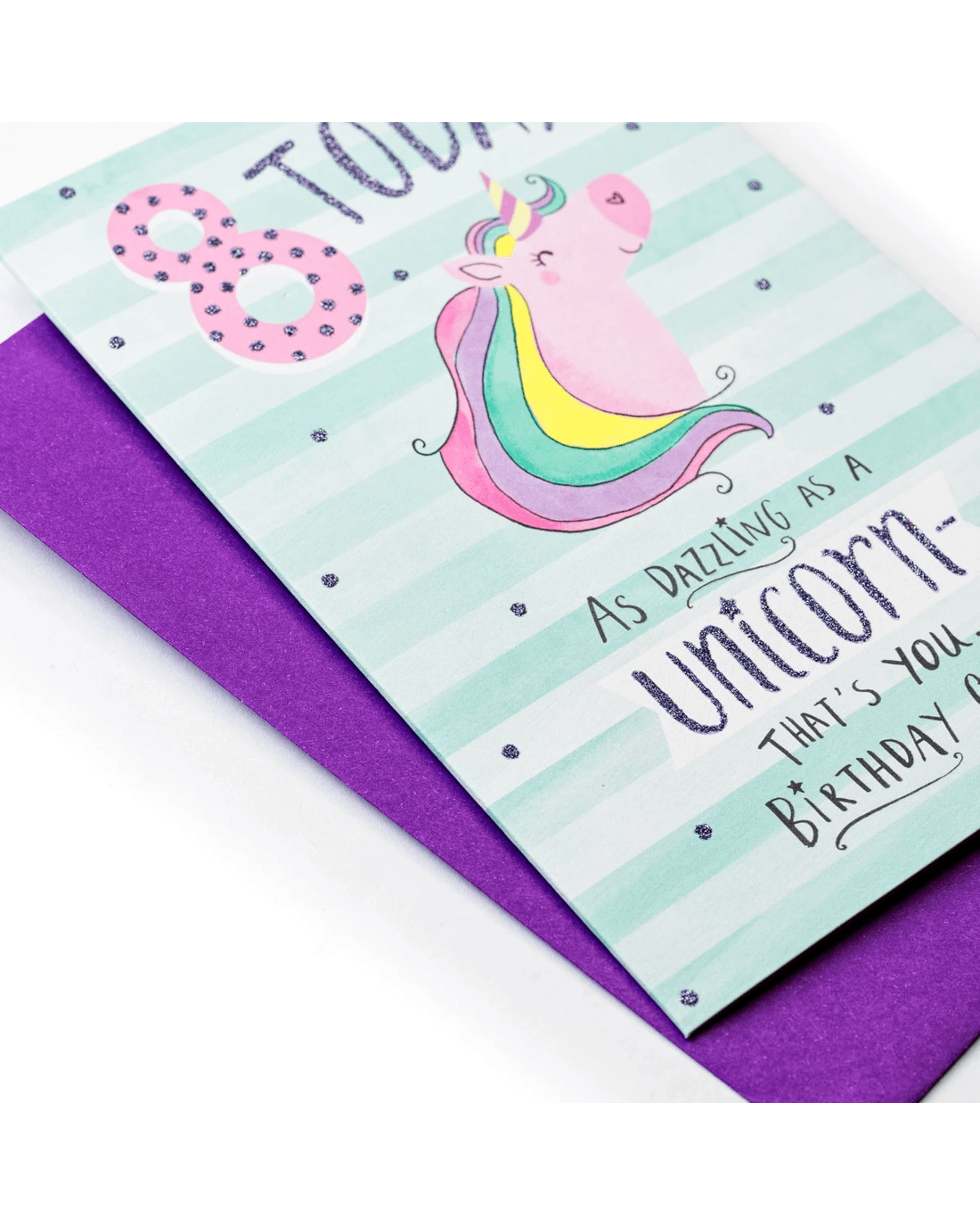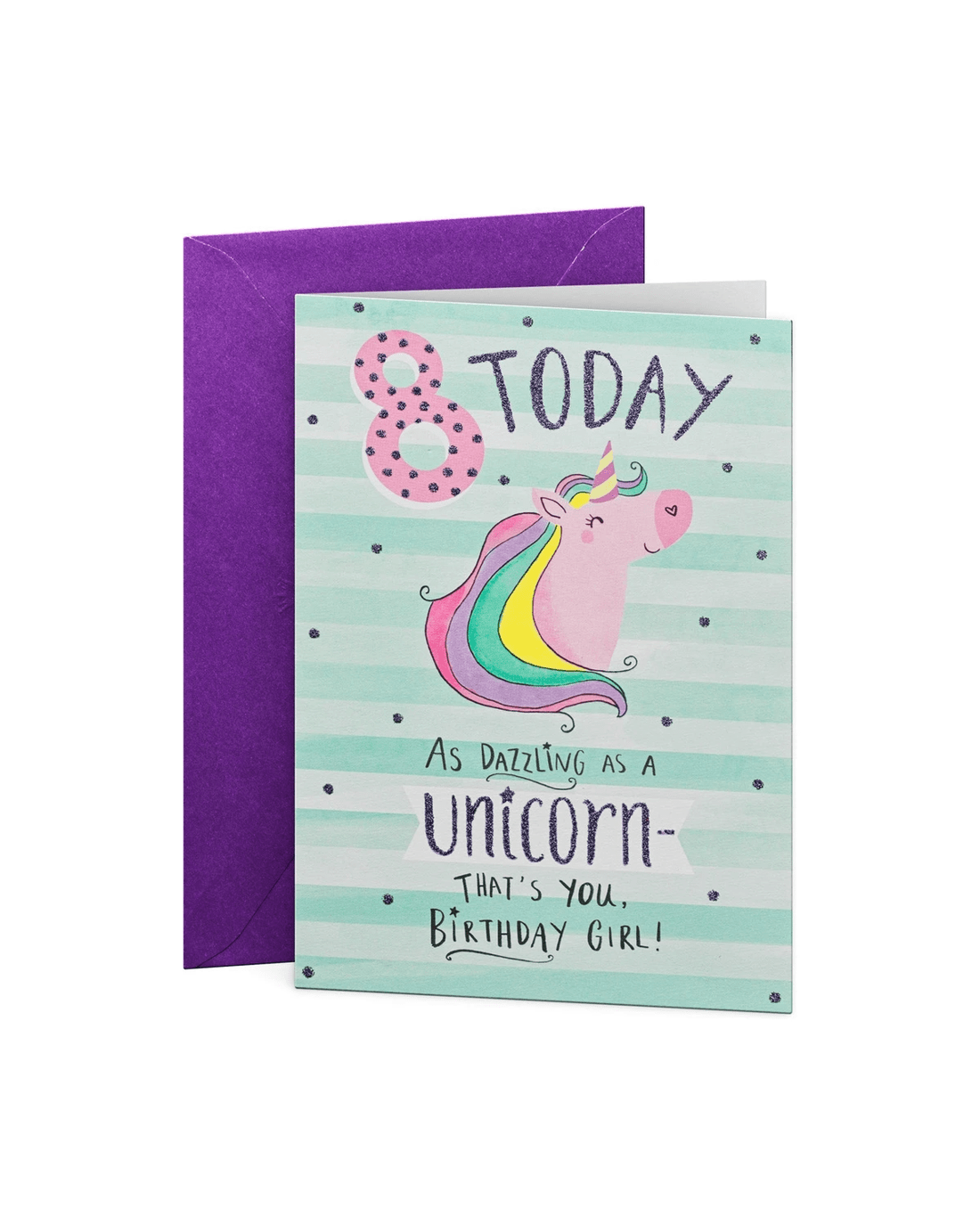 Make your young ones birthday extra special with this dazzling unicorn card.