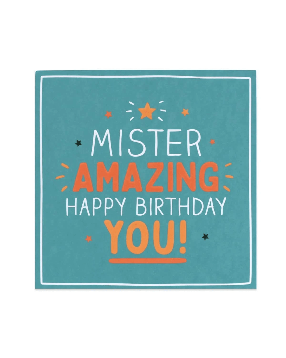 • The front of the card features neon highlights, embossed elements, illustrations of stars and the message ‘MISTER AMAZING HAPPY BIRTHDAY YOU!’