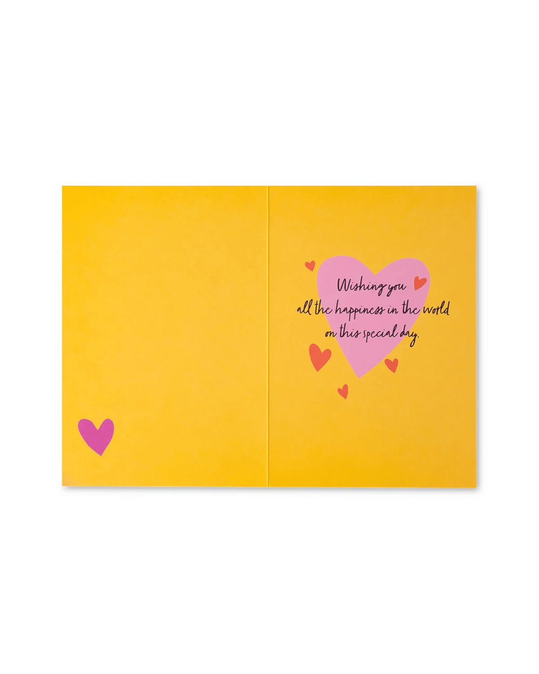• The inside of the card features the message 'Wishing you all the happiness in the world on this special day'