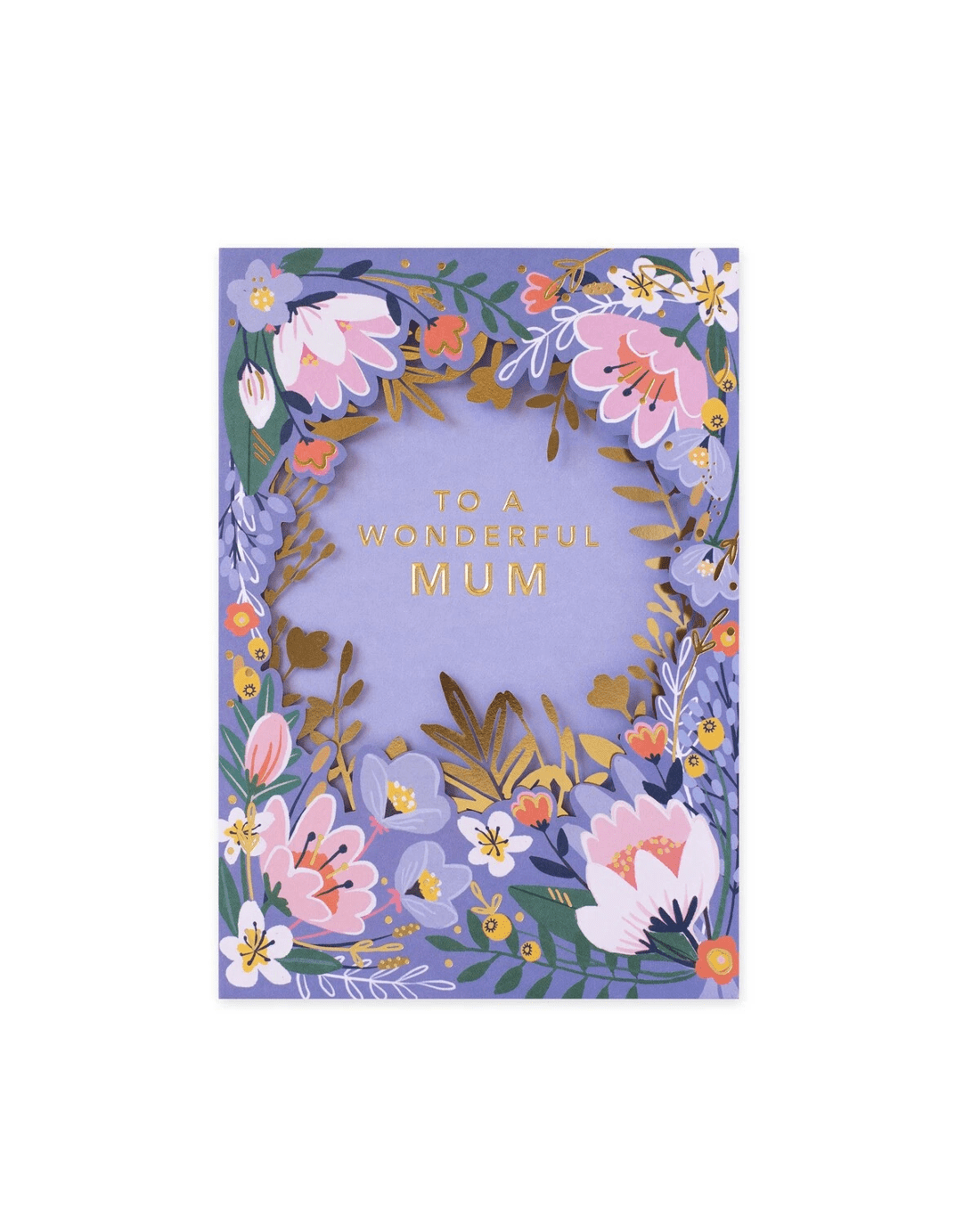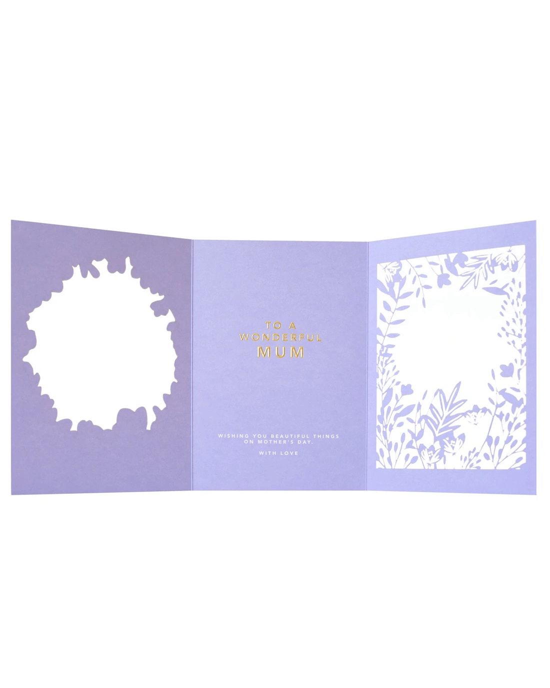 • The inside of the card features gold foil highlights and the message 'TO A WONDERFUL MUM WISHING YOU BEAUTIFUL THINGS ON MOTHER'S DAY. WITH LOVE'