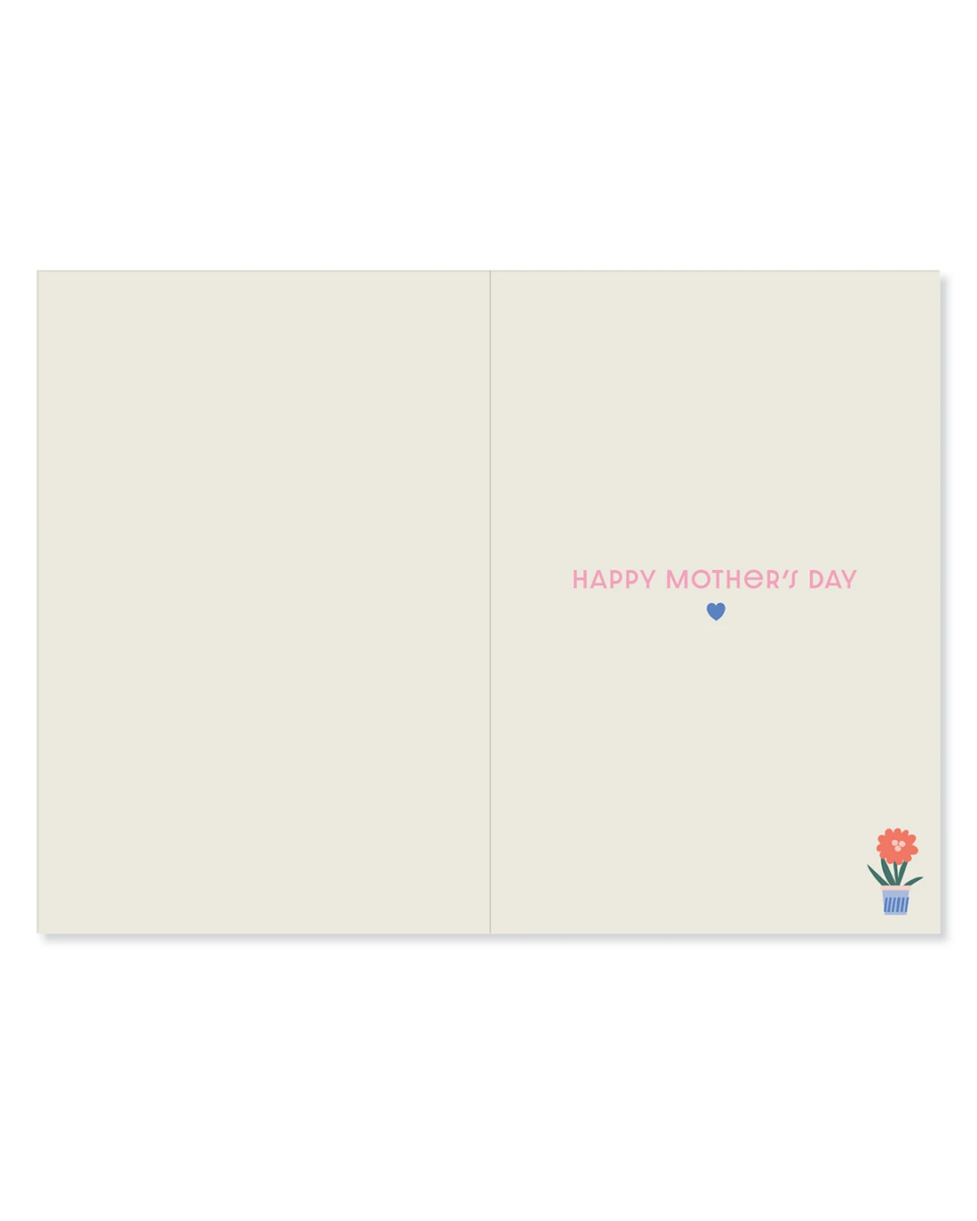 • The inside of the card features an illustration of a colourful flower potted plant and a love heart alongside the message 'HAPPY MOTHER'S DAY'