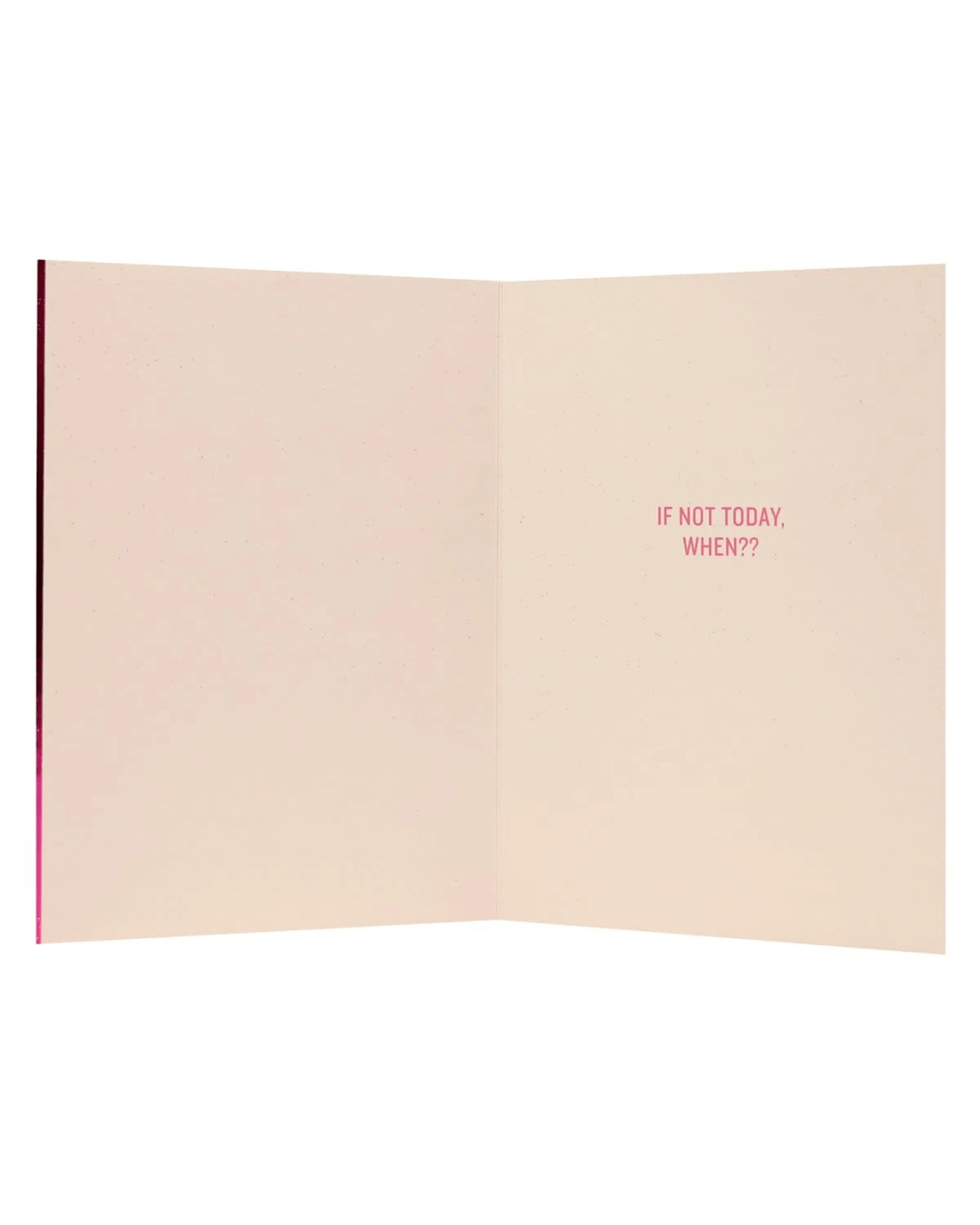 • The inside of the birthday card features a light pink background with the message 'If not today, when??'