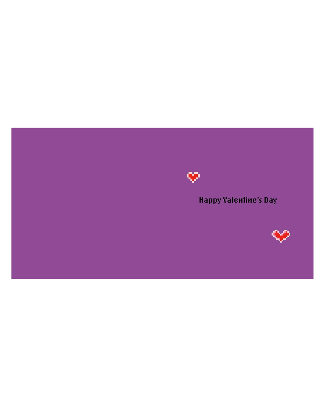 • The inside of the card features illustrations of two red and white pixel hearts alongside the message 'Happy Valentine's Day'