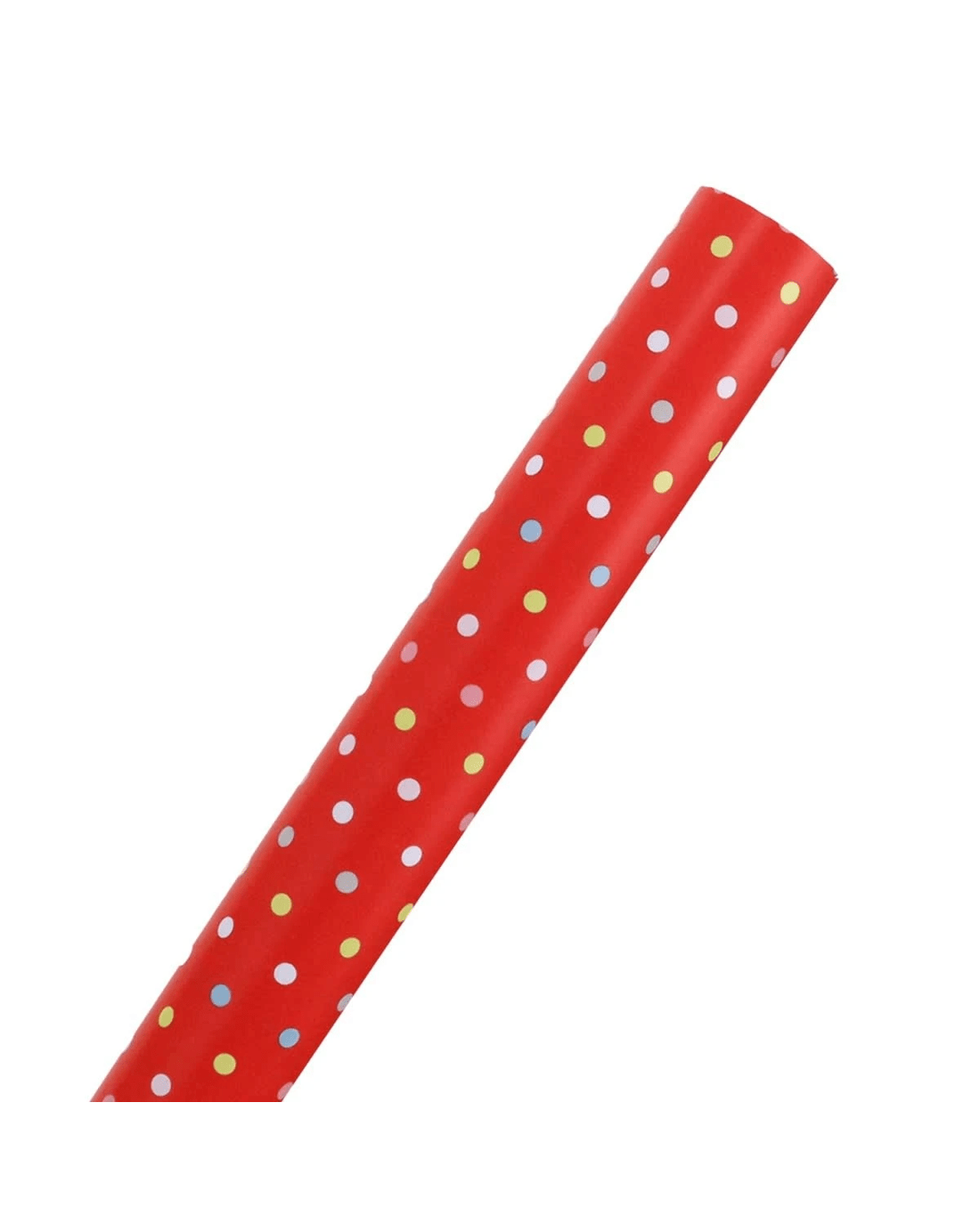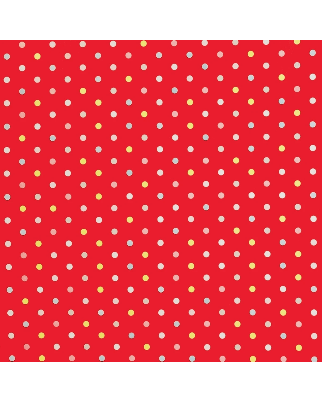 • This fun design features illustrations of colourful polka dots on a red background