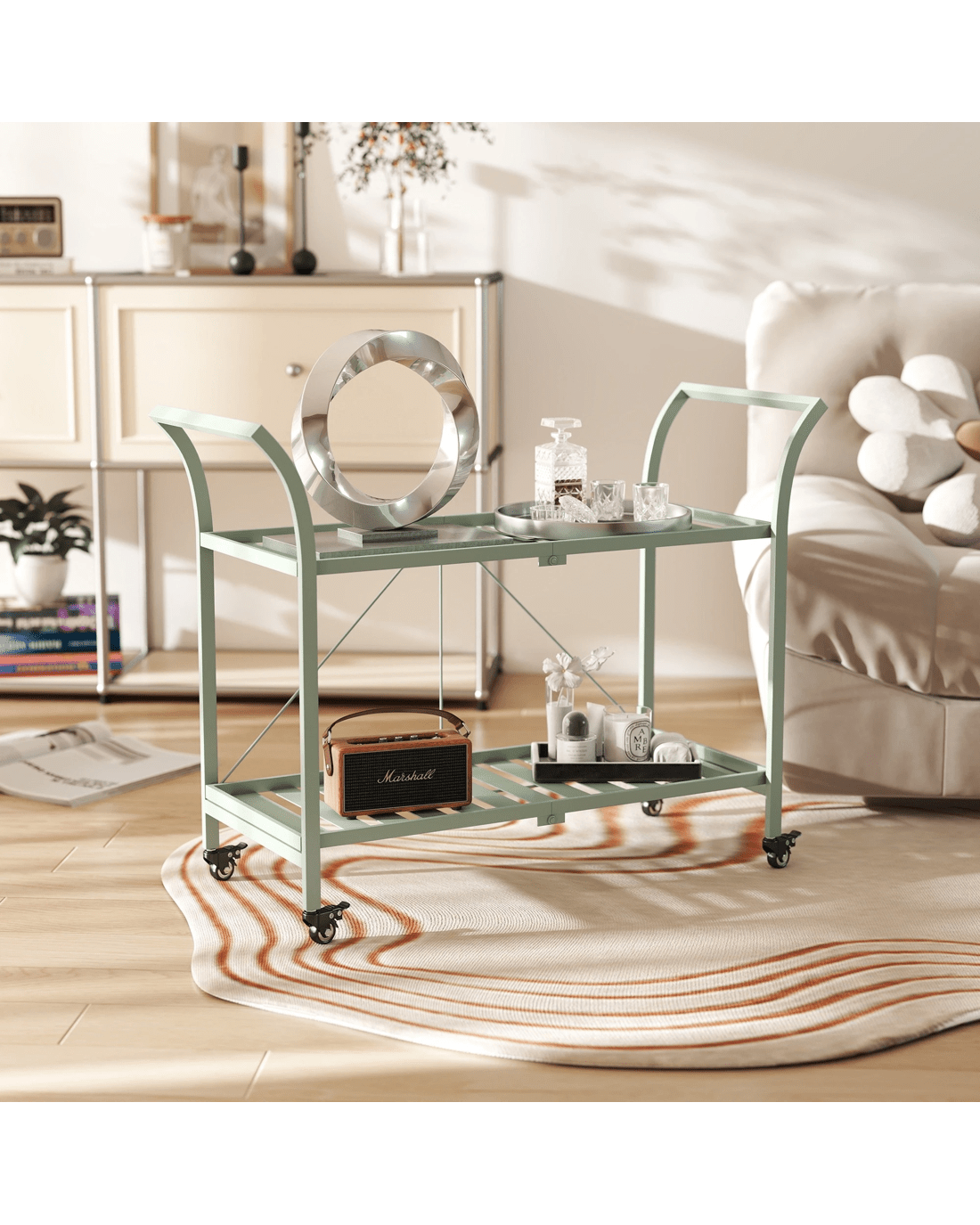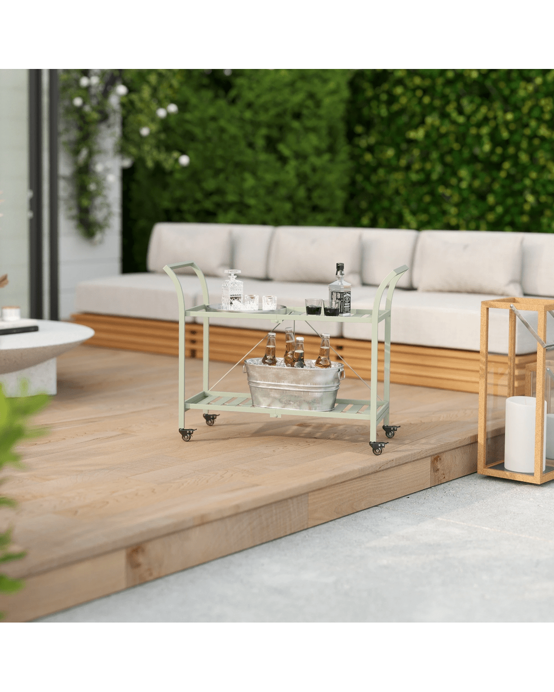 Designed for effortless entertaining Indoor and outdoor living, the 2-Tier Metal Folding Bar Cart is your stylish solution for versatile storage and service. Whether you're hosting guests on the patio or organising your kitchen essentials indoors, this cart delivers modern function with timeless design. Available in Sage Green or White Gloss, it’s made to complement both indoor settings and alfresco spaces.