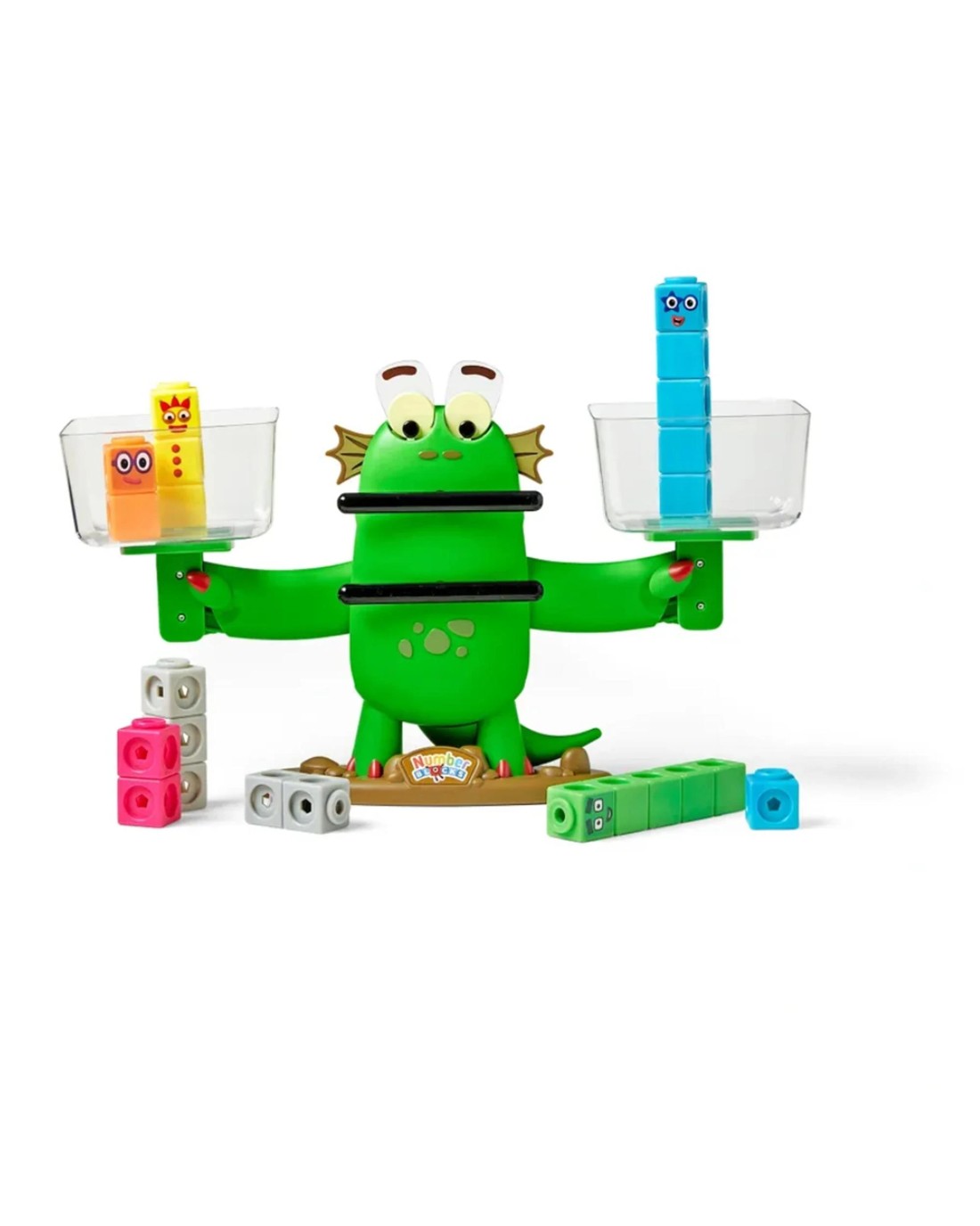 Watch Blockzee™, the lovable monster from the global hit TV series Numberblocks, move her eyes, arms, and mouth to compare numbers! This highly engaging balance features clear, sturdy buckets to hold multiple Numberblocks that children can easily see. Colorful, language-free activity cards guide children through foundational math skill such as number identification, number comparison, counting, and simple addition. Children will also practice building their fine motor skills through interactive, character-led play with this sturdy set. Ages: 3 +