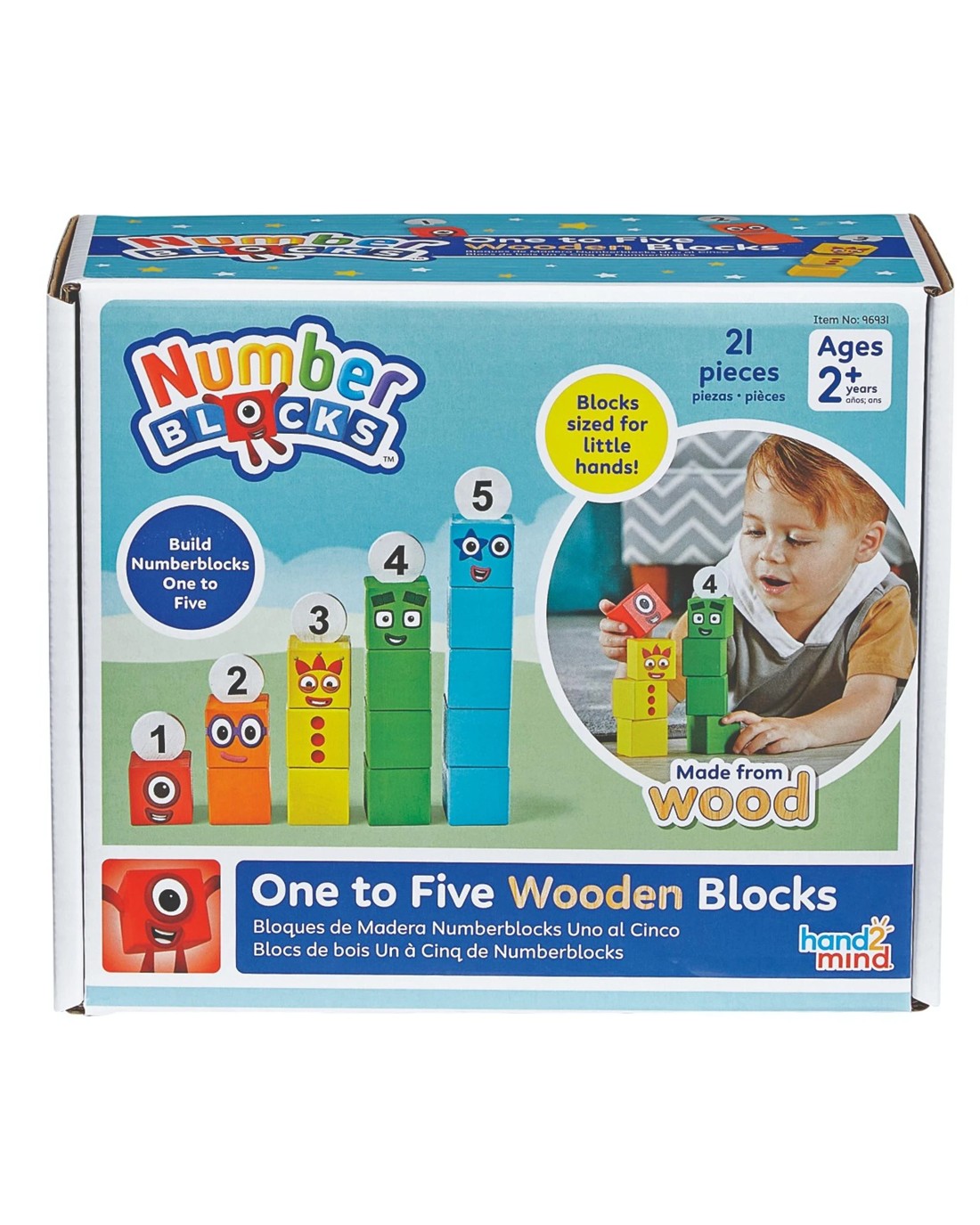 Stack and create Numberblocks characters One to Five with these durable wooden blocks! Each character comes with a wooden Numberling and enough colourful wooden blocks to match their number. Children will have a blast building and rebuilding the characters while boosting their fine motor skills. Includes 15 wooden blocks, 5 wooden Numberling blocks, a storage bag, and an activity guide. Ages 2 +