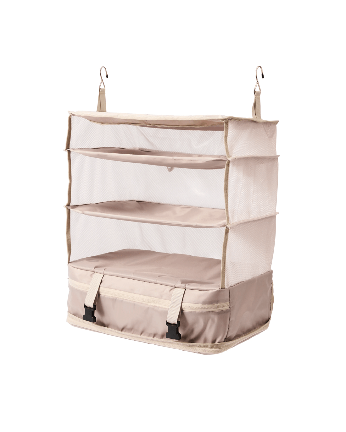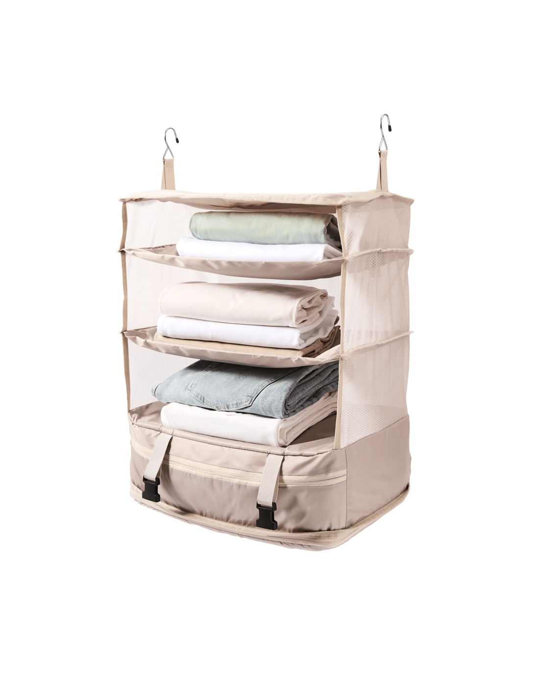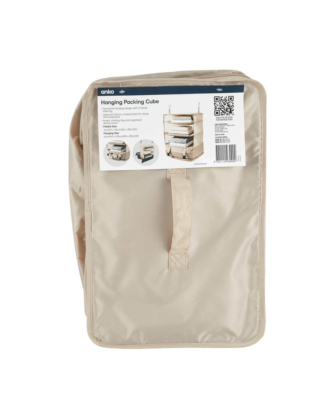 The Hanging Packing Cube will help keep your clothes and other essentials organised when you're on the go. It features a three-tiered shelving and a hanging design for easy accessibility.