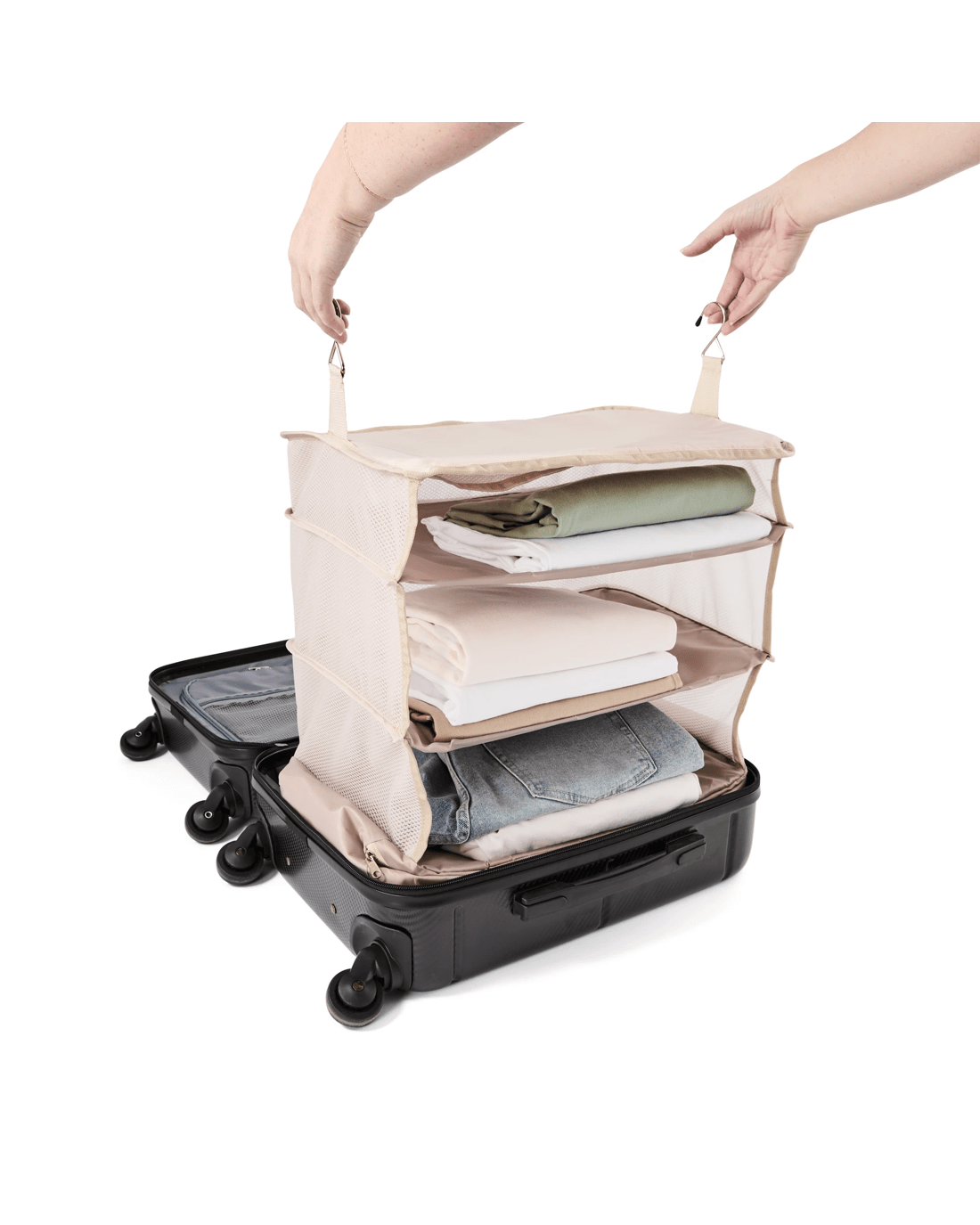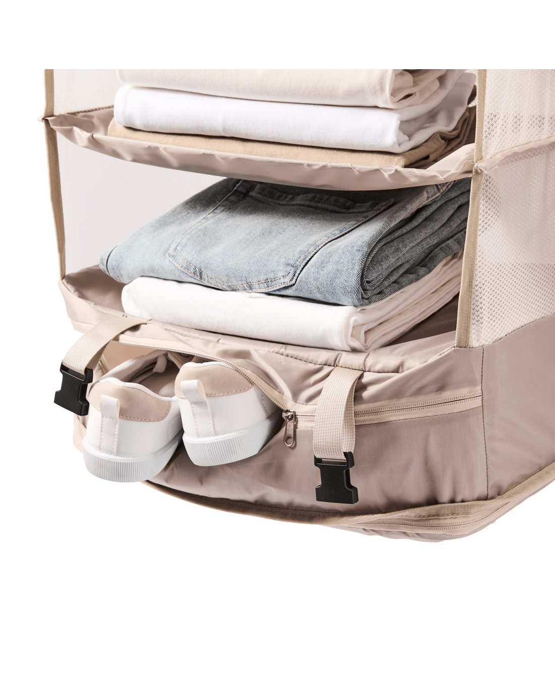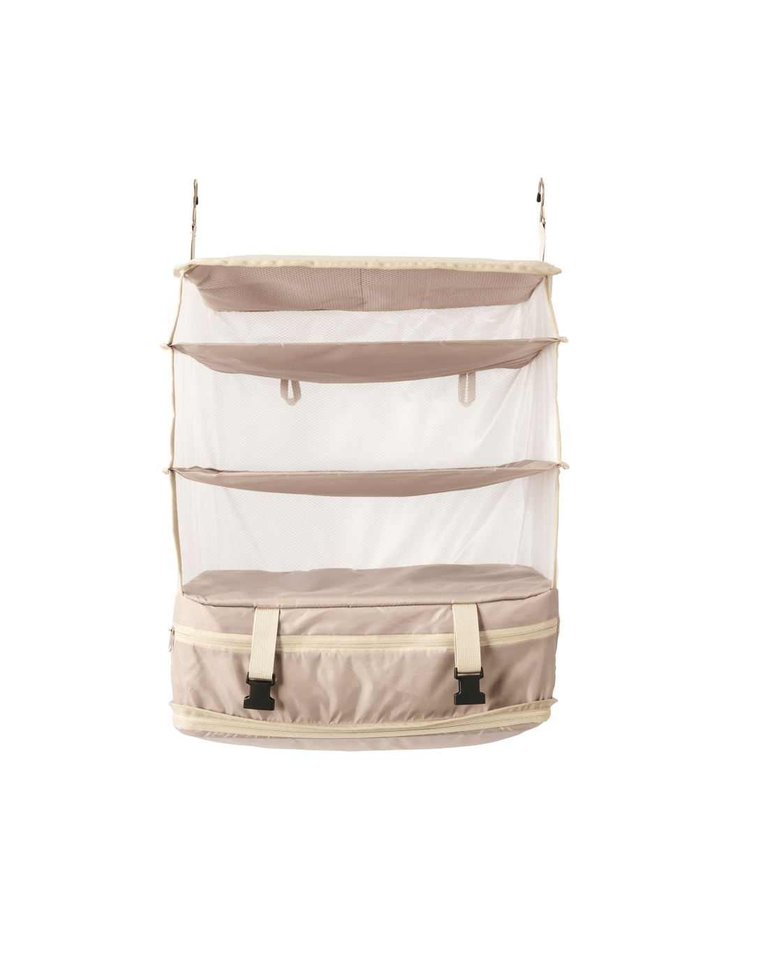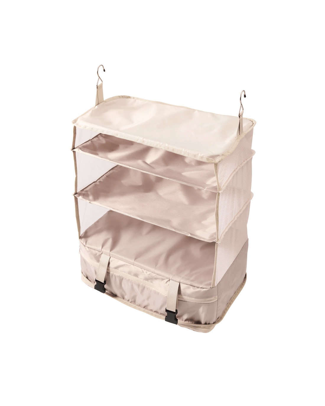 The Hanging Packing Cube will help keep your clothes and other essentials organised when you're on the go. It features a three-tiered shelving and a hanging design for easy accessibility.