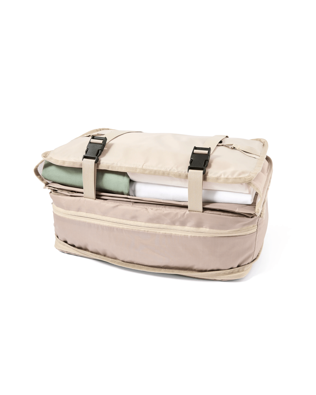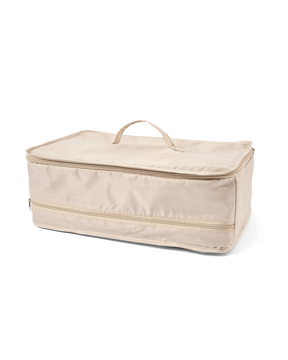 A zippered bottom compartment provides dedicated space for shoes or keepsakes, keeping them separate from clothing. This versatile cube is perfect for maximising space in your luggage during your trips.