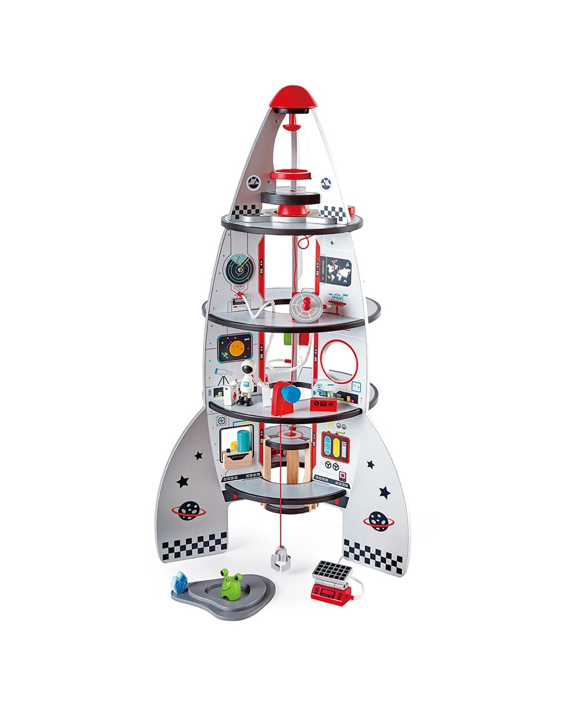 The HAPE 20pc Four Stage Rocket Ship is designed for young children to explore imaginative space adventures. This wooden toy features four levels of exploration and a detachable planetary lander, encouraging creative storytelling and role-play for children aged three and above.