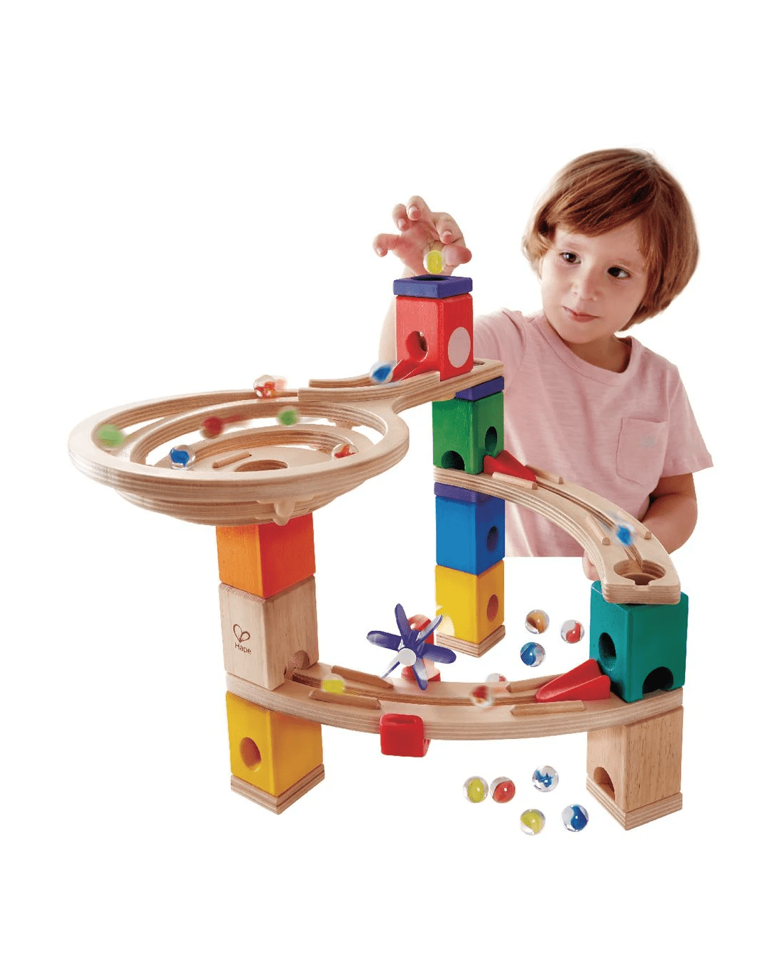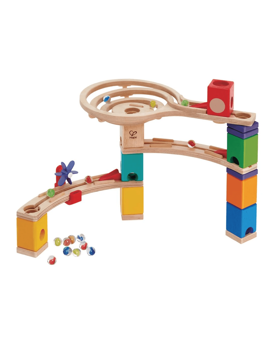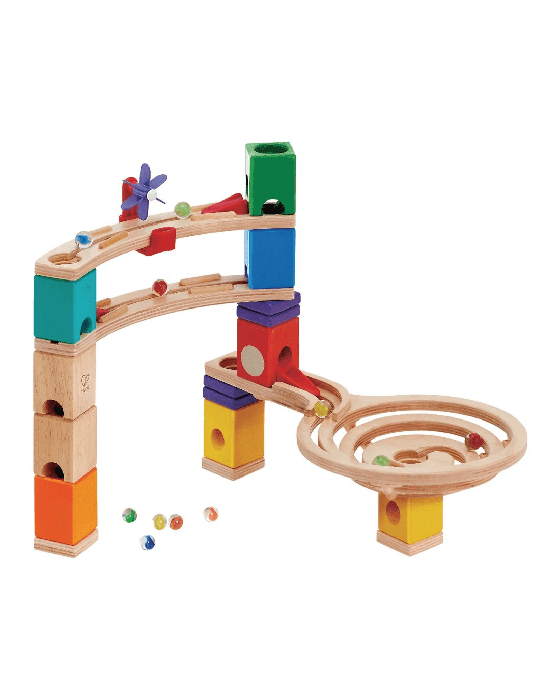 - This set includes 9 x distributor blocks, 2 x curve rails, 1 x spiral twist, 4 x height adjusters, 4 x stabiliser rings, 3 x accelerators, 2 x hole shutters, 30 x marbles, 1 x windmill spinner and 1 x universal clamp.