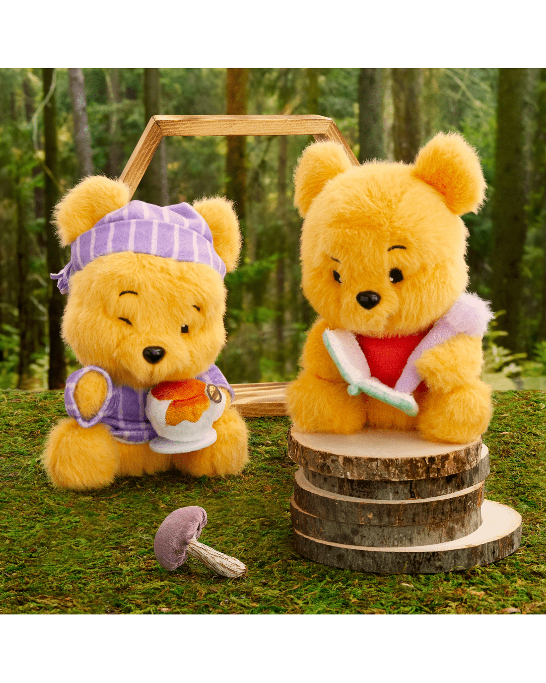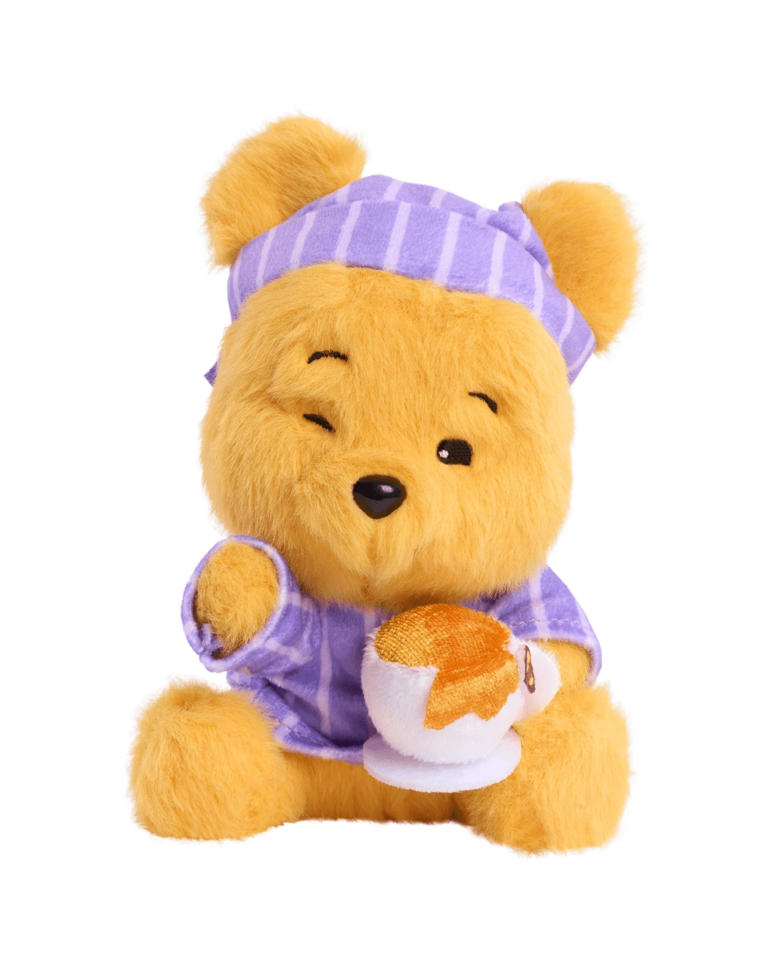 - HAUL THEM ALL: Collect plush toys inspired by Winnie the Pooh asleep while reading, writing in a journal, lifting weights, enjoying coffee, in a cozy robe, eating pie, playing with a butterfly, or enjoying spa treatment (each sold separately).