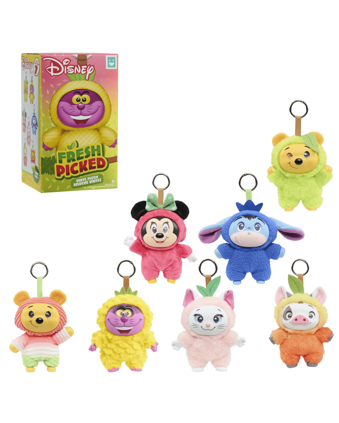 - HAUL THEM ALL: Collect Disney Fresh Picked clip-on toys inspired by Disney’s Winnie the Pooh, Minnie Mouse, Eeyore, Pua, Marie, Cheshire Cat, or the rare surprise version of Winnie the Pooh (each sold separately).