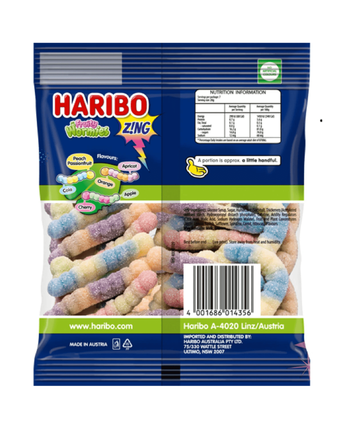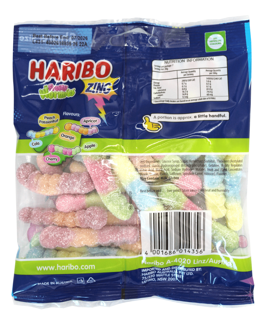 • Ingredients: Glucose Syrup, Sugar, Humectant (Sorbitol), Gelatine, Acidity Regulators (Citric Acid, Trisodium Citrate), Fruit and plant Concentrates (Radish, Sweet Potato, Carrot, Safflower, Blackcurrant)