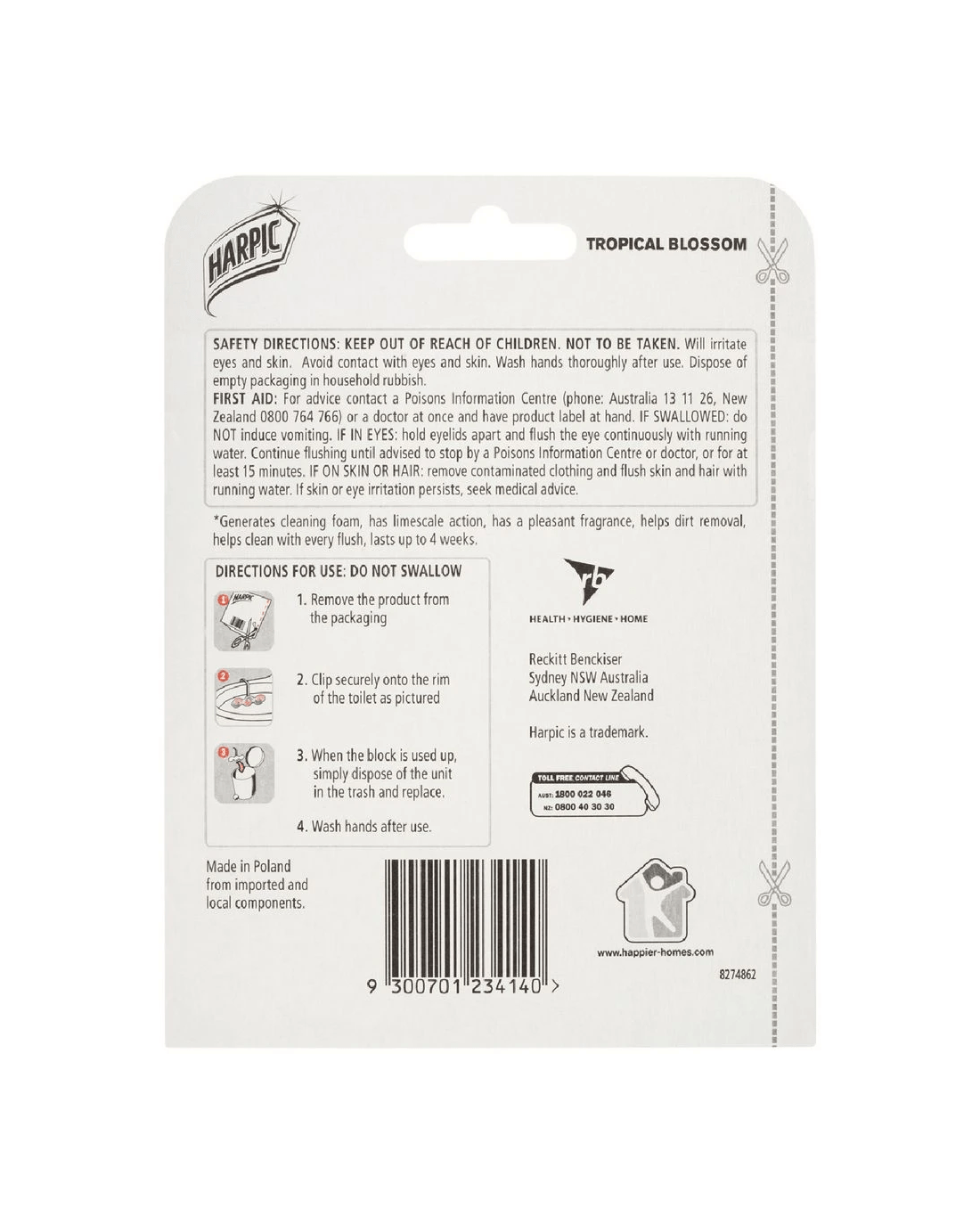 The Harpic Fresh Power6 Toilet Block will help to keep your bathroom clean and will freshen the toilet bowl for up to 4 weeks. It utilises 6 different cleaning actions to ensure that your toilet remains clean and pleasantly fragranced.