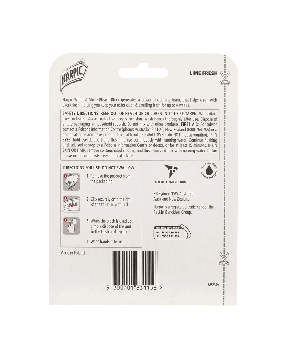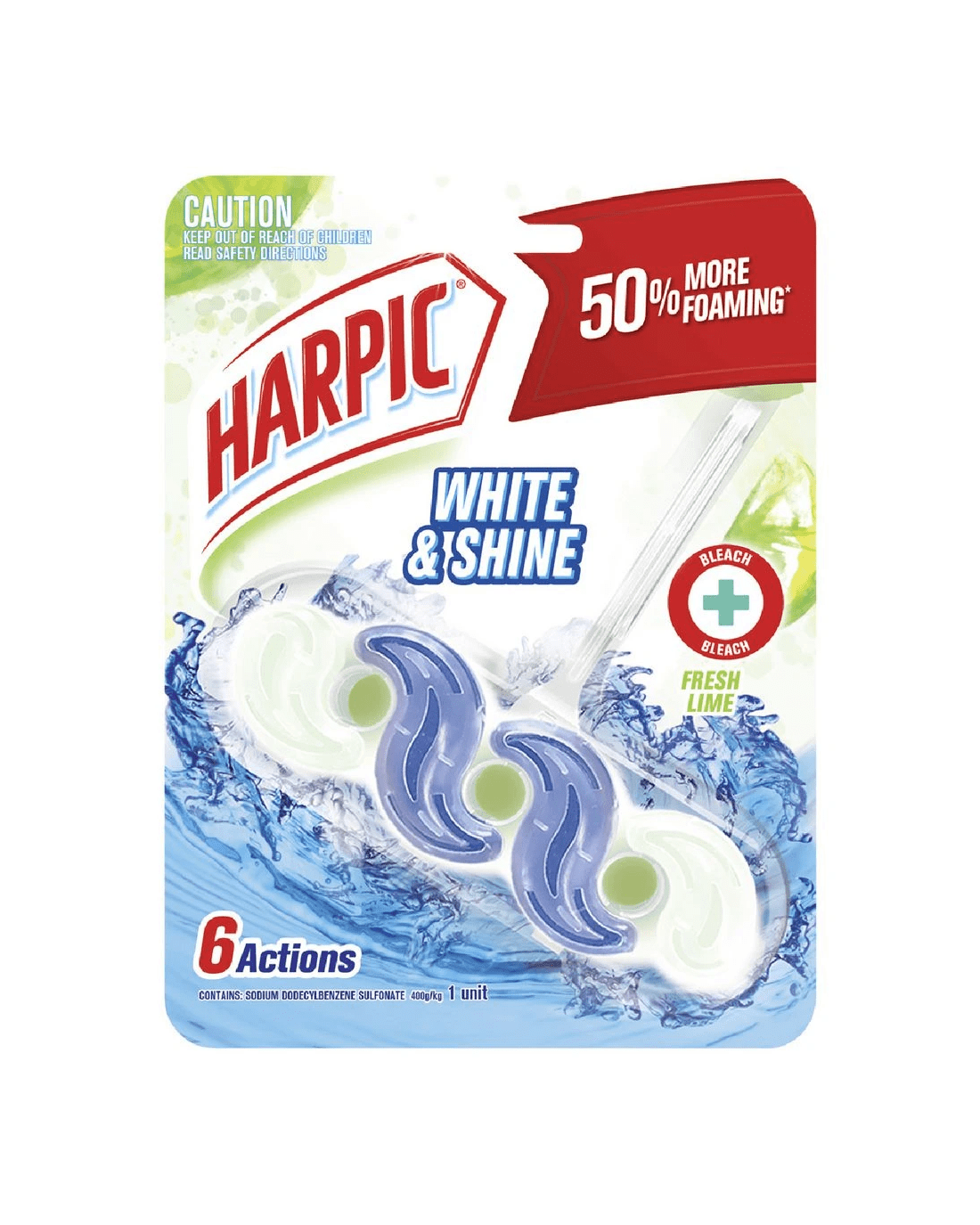 This Harpic White and Shine Bleach comes in a 39 g block, lasting up to 4 weeks long. It has a pleasant lime fragrance and cleans with every flush of your toilet, removing dirt and debris.