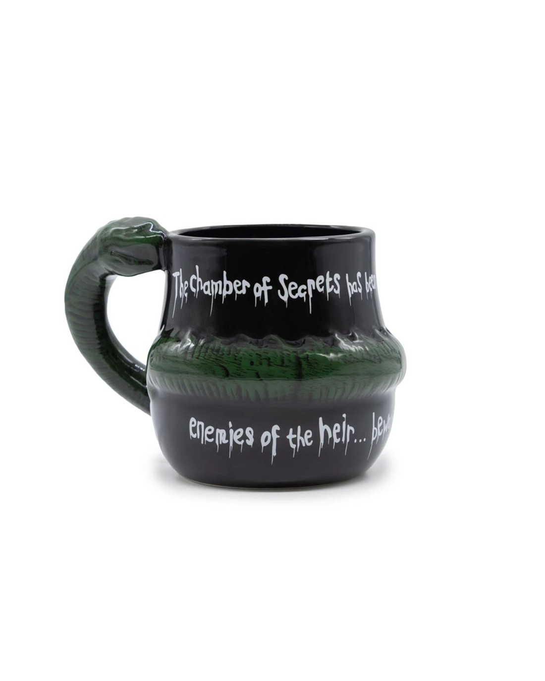 Dare to sip from a vessel marked by dark magic with this striking Basilisk Mug, inspired by *Harry Potter and the Chamber of Secrets*. Featuring the eerie warning The Chamber of Secrets has been opened. Enemies of the heir beware, this ceramic mug captures the ominous aura of one of Hogwarts' most chilling mysteries.