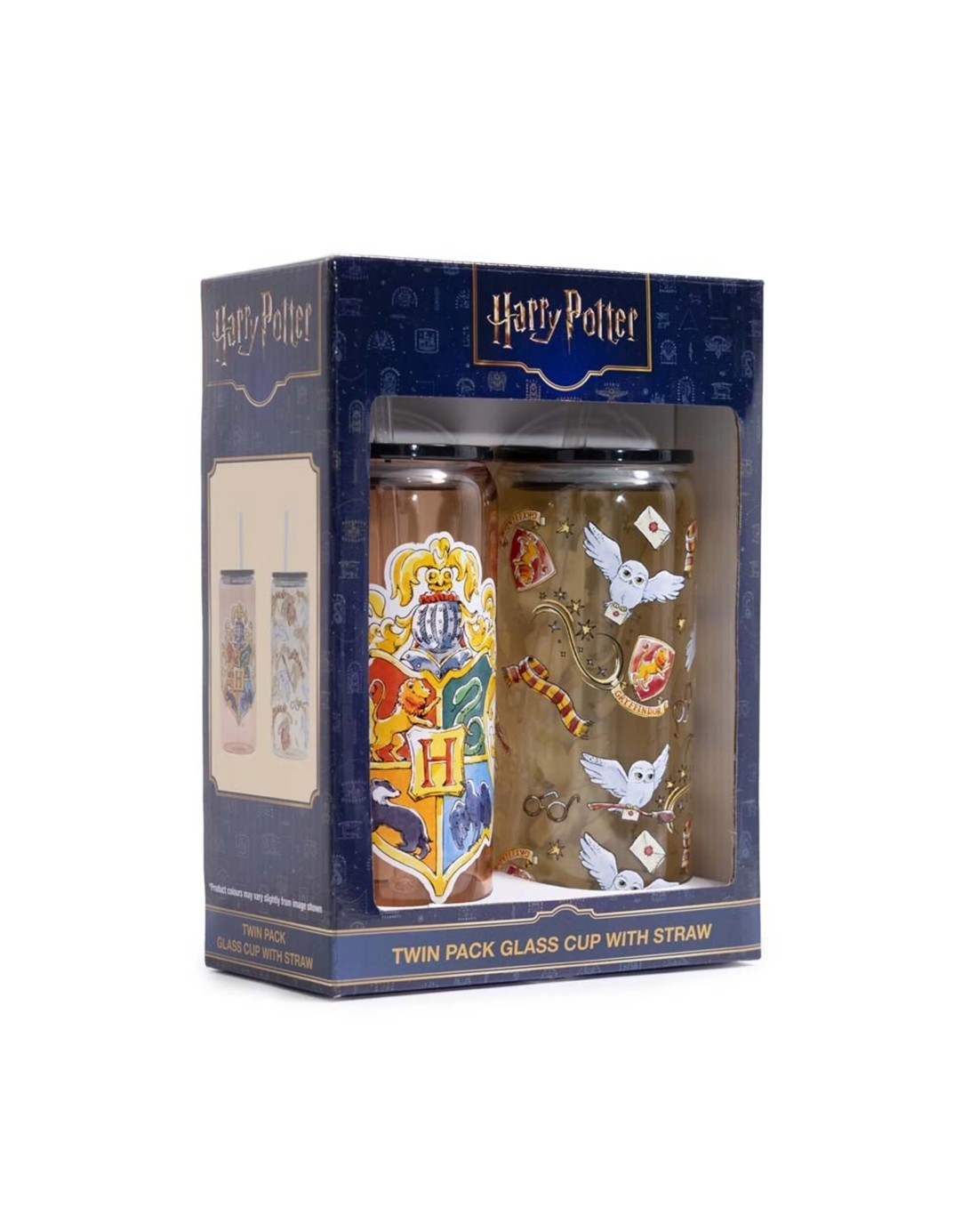 Bring a touch of magic to every drink with this officially licensed Harry Potter Twin Pack Glass Cup Set. Featuring two beautifully designed cups, this enchanting set showcases iconic artwork inspired by the Wizarding World. Including the Hogwarts crest and charming illustrations of Hedwig, house symbols, and magical elements from the series.