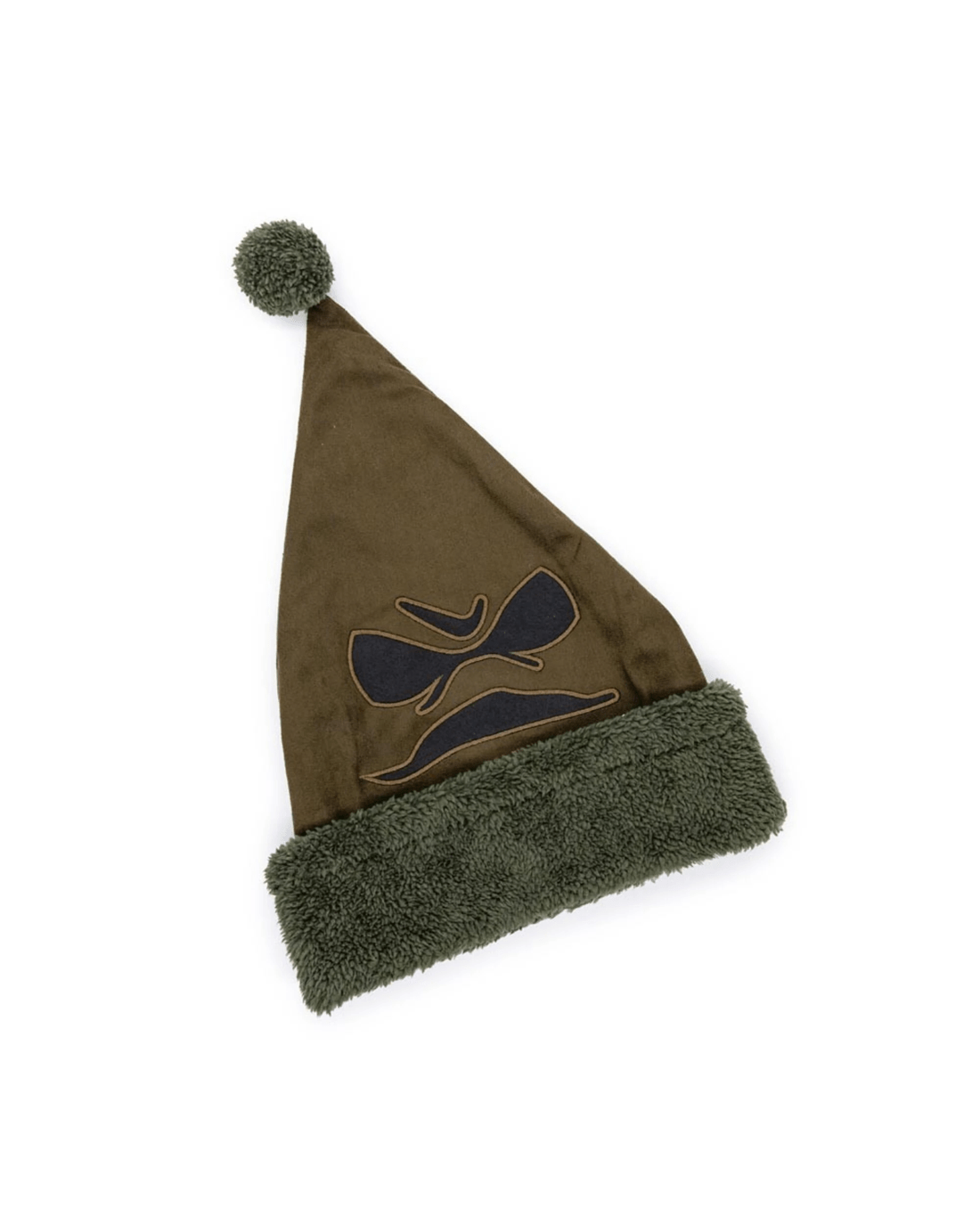 Crafted in soft brown fabric with an embroidered face design, the hat features a plush faux-fur cuff and matching pom-pom in deep green tones. Comfortable and cosy, it's ideal for wearing during holiday gatherings, gift giving or adding a spell of magic to your Christmas outfit.