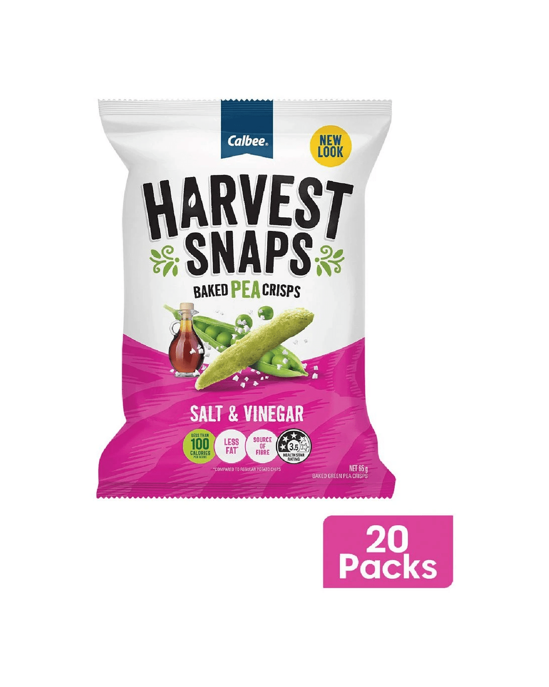 Sold by OfficeworksHarvest Snaps Salt & Vinegar 65g 20 Pack