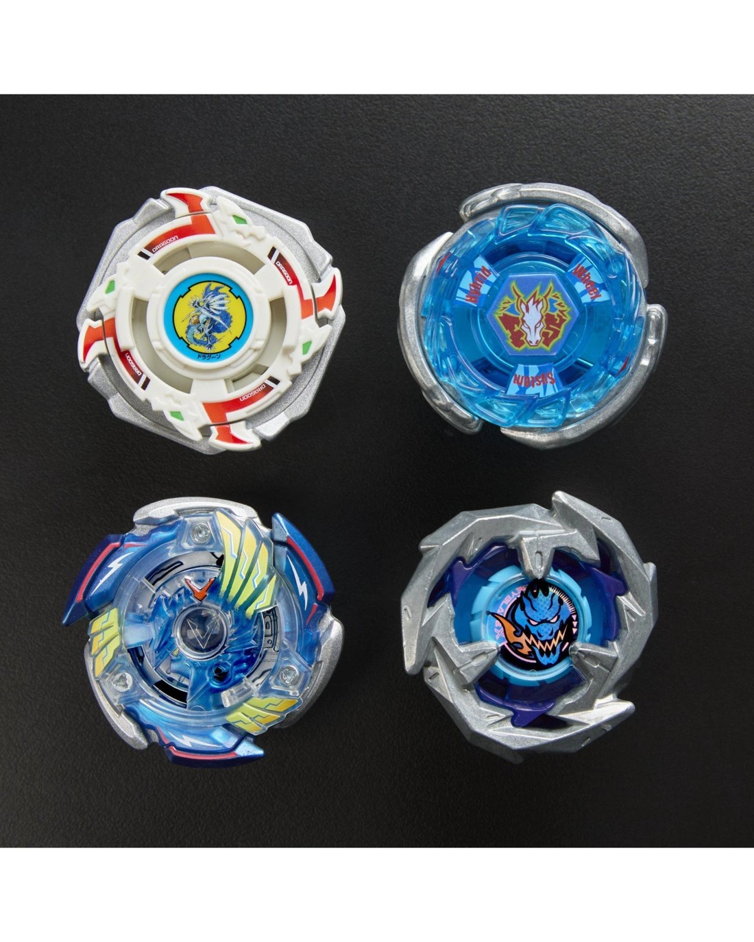 - 4 FAN FAVOURITE ATTACK TYPE TOPS: Includes Dragoon Storm 4-60RA Left-Spin Top, Storm Pegasis 3-70RA Right-Spin Top, Victory Valkyrie 2-60RA Right-Spin Top, and Dran Sword 3-60F Right-Spin Top. All 4 tops have Attack Type Blades