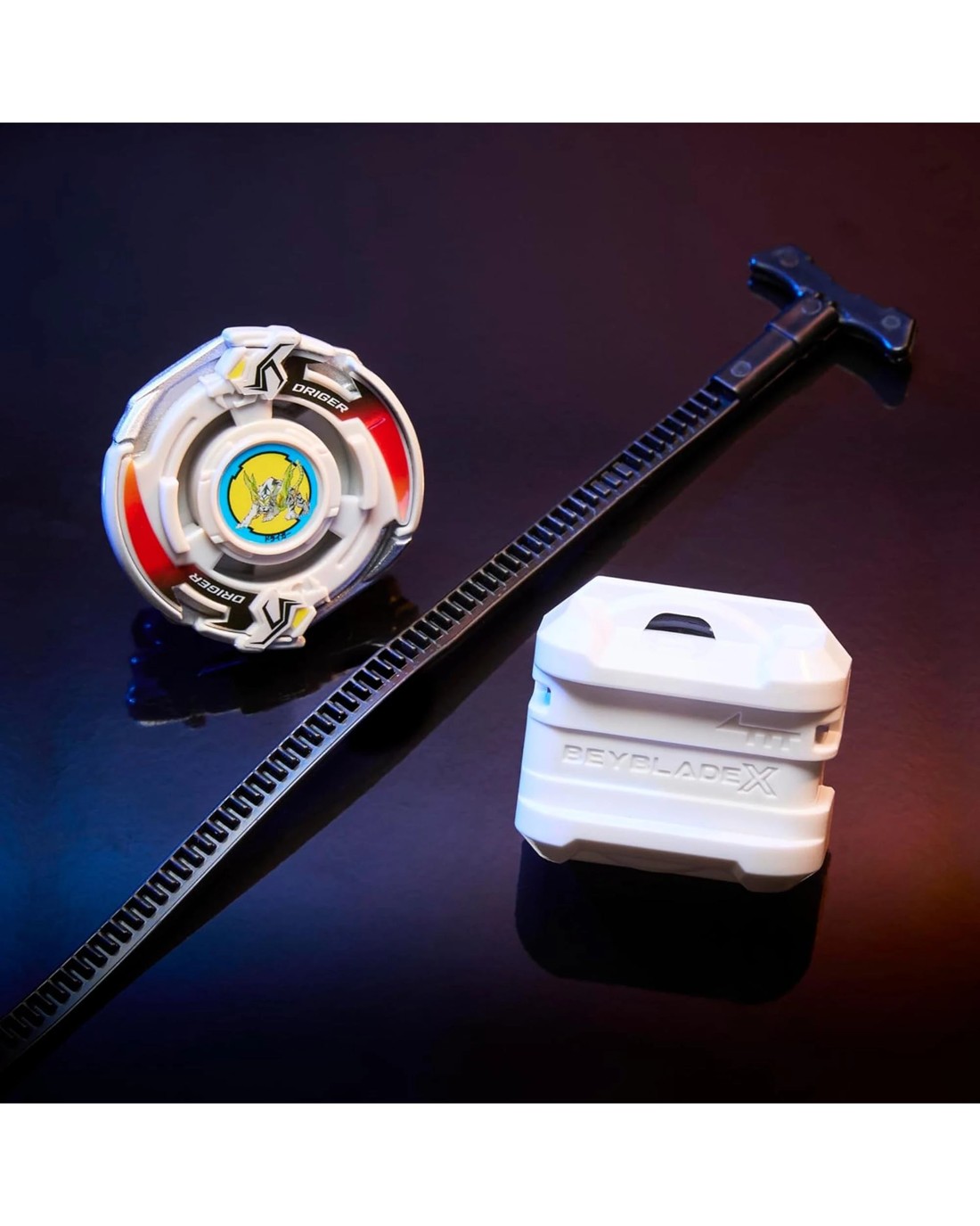 Experience the thrill of Beyblade X, the next generation of Beyblade stadiums, launchers and tops. The Beyblade X Driger Slash 4-80P X-Over Project Starter Pack includes 1 right-spinning Balance Type top with a Balance Type Blade and launcher (Beystadium required, sold separately). Launch right into battle or reconfigure the interchangeable blade, ratchet, and bit of this Starter Pack with those of other Beyblade X tops (sold separately) to build your perfect Beyblade top. Beyblade X features the X-Celerator Gear System innovation to level-up your game. When the gear of a Beyblade X top engages the rail of the Beystadium arena, it can super-accelerate into an Xtreme Dash around the stadium for crushing collisions and epic bursts. Bladers launch their tops into fierce clashes against their opponent's to score points. Ages 8 +