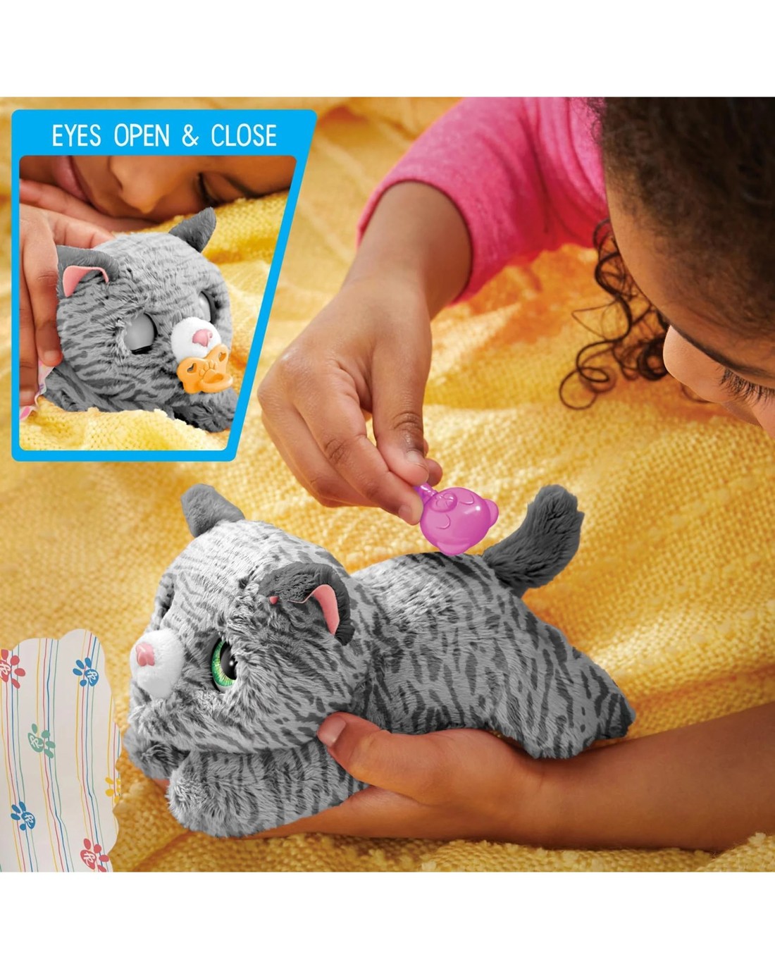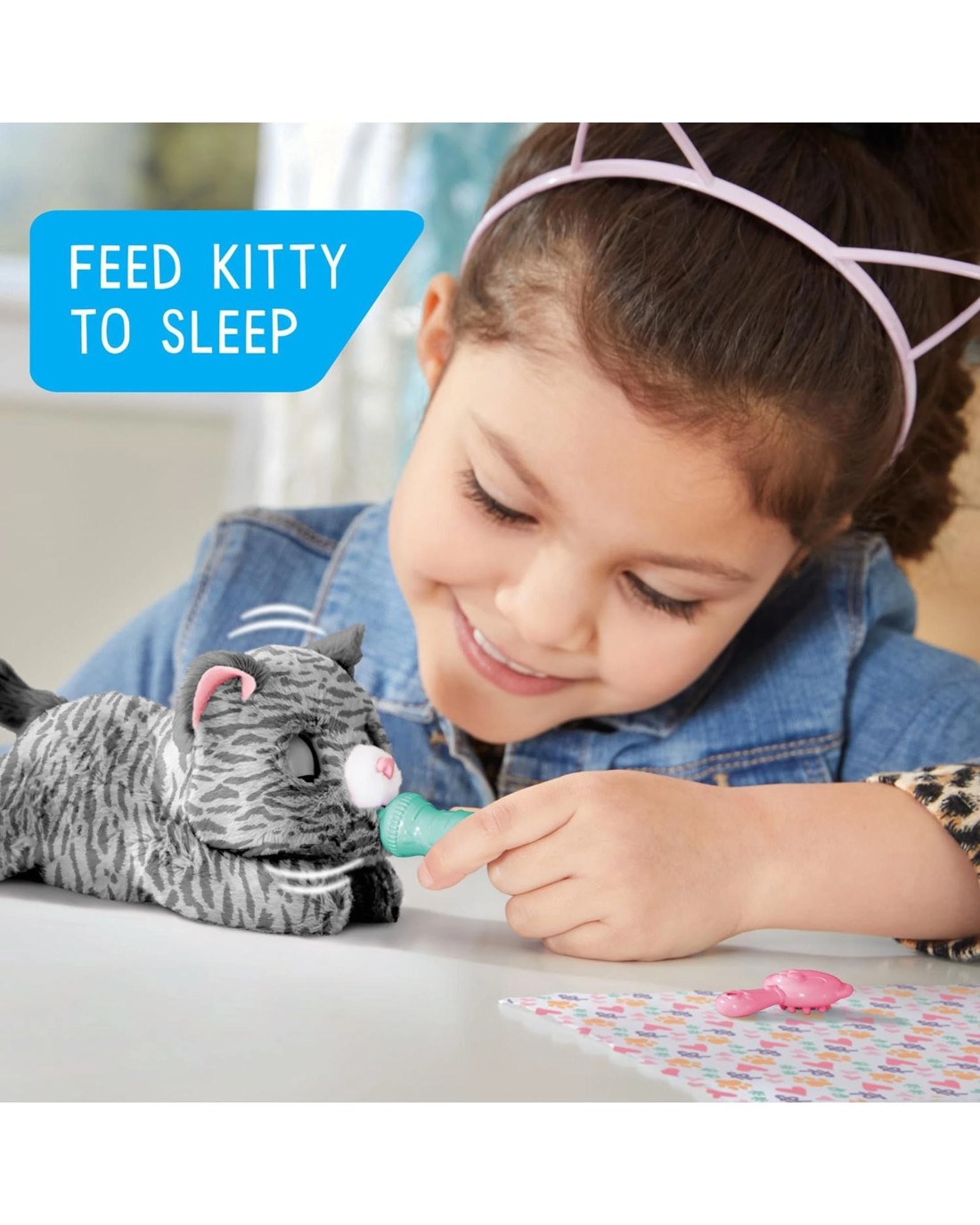 FurReal Newborns Interactive Animatronic Plush Toys are soft, sweet, adorable pets who just want to find a forever home. Who could resist those big, beautiful eyes Feed with a bottle or give a pacifier and the eyes will close as the pet makes happy contended sounds So many ways to care: Kids can brush their pet's soft fur with the brush accessory (another activity that makes them happy) and swaddle their precious pet with a blankie, giving lots of hugs. A sweet baby pet that's sure to captivate girls and boys ages 4 and up. Makes a thoughtful gift.