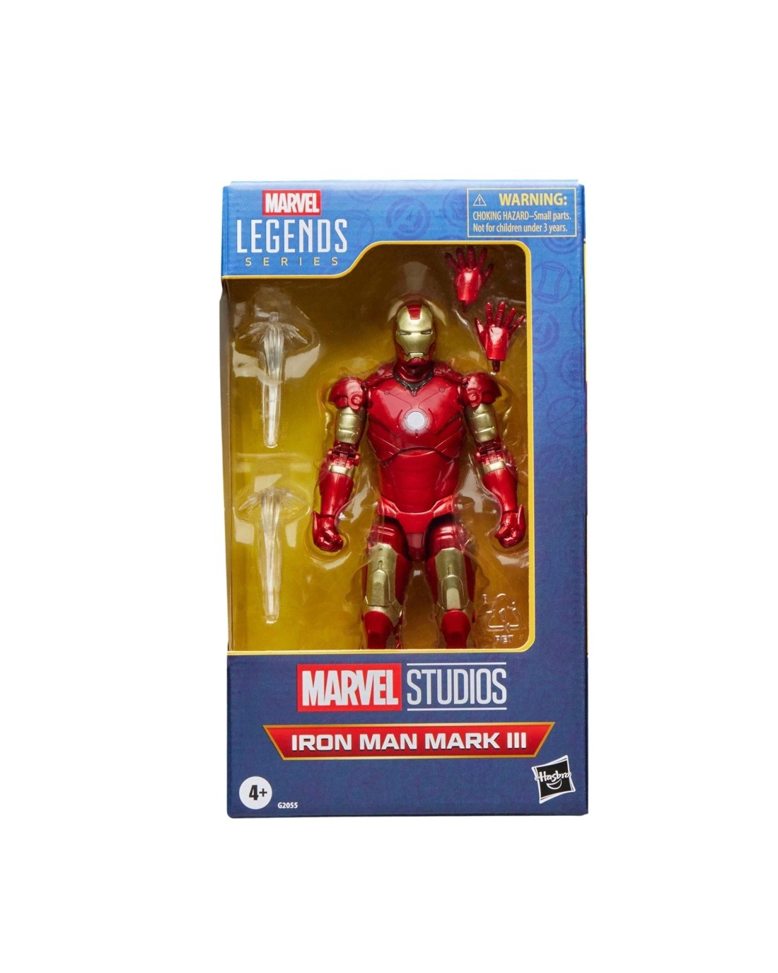 Bring the excitement and wonder of the Marvel Universe to your collection with this Hasbro Marvel Legends Iron Man action figure! This collectible 15 cm scale Marvel figure is detailed to look like the character's Mark III Iron Man suit in Marvel Studios' Iron Man movie. Hasbro Marvel action figures' 15 cm scale make them great for displaying in fans' collections. Figure is fully articulated with premium design and poseable head, arms, and legs, and also comes with 4 accessories, including a set of alternate hands and blast FX. Reimagine movie-inspired scenes on your shelf with Marvel Legends action figures, toys, and Marvel collectibles. Ages 4 +