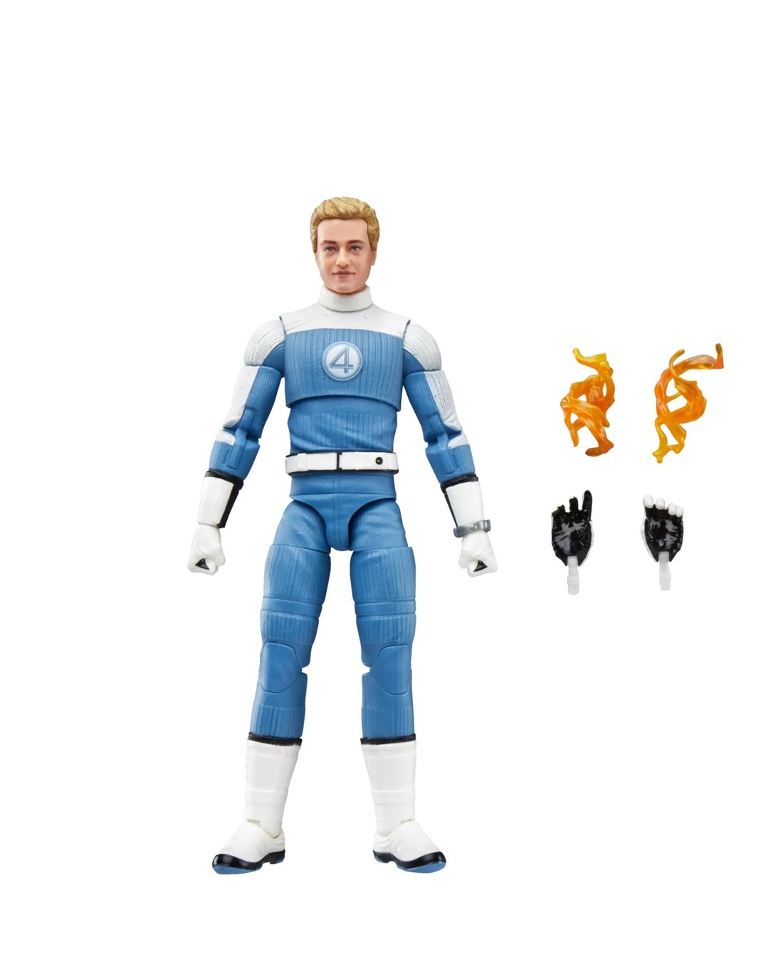 MARVEL STUDIOS' THE FANTASTIC FOUR: FIRST STEPS: Collectible Johnny Storm figure is inspired by character's blue Fantastic Four suit in the Marvel Cinematic Universe film -- a great gift for collectors and fans ages 4 and upFILM-INSPIRED ACCESSORIES: Officially licensed Hasbro Marvel Legends set comes with 4 accessories, including alternate hands and flame FXPREMIUM DESIGN AND DECO: Fans and collectors can display this premium 6 inch action figure (15 cm) with movie-accurate design and deco in their collection6-INCH SCALE ACTION FIGURE: Featuring a window box package with movie-inspired branding, fans and collectors can display this premium figure designed at the Marvel 6 inch action figure scale (15 cm)DISPLAY-WORTHY ARTICULATION: Collectible action figure features over 20 points of articulation with fully poseable head, arms, and legs. Great for play or display!JOHNNY STORM: The most popular member of the Fantastic Four known for his fiery attitude and charming personality, Johnny Storm spends his weekends chasing thrills and teasing his sister, Sue StormBUILD OUT YOUR FANTASTIC FOUR COLLECTION: Collect your own First Family with Marvel's The Thing, Human Torch, Mister Fantastic, Marvel's Invisible Woman, and Silver Surfer Fantastic Four action figures (Each sold separately. Subject to availability)Item Specifics