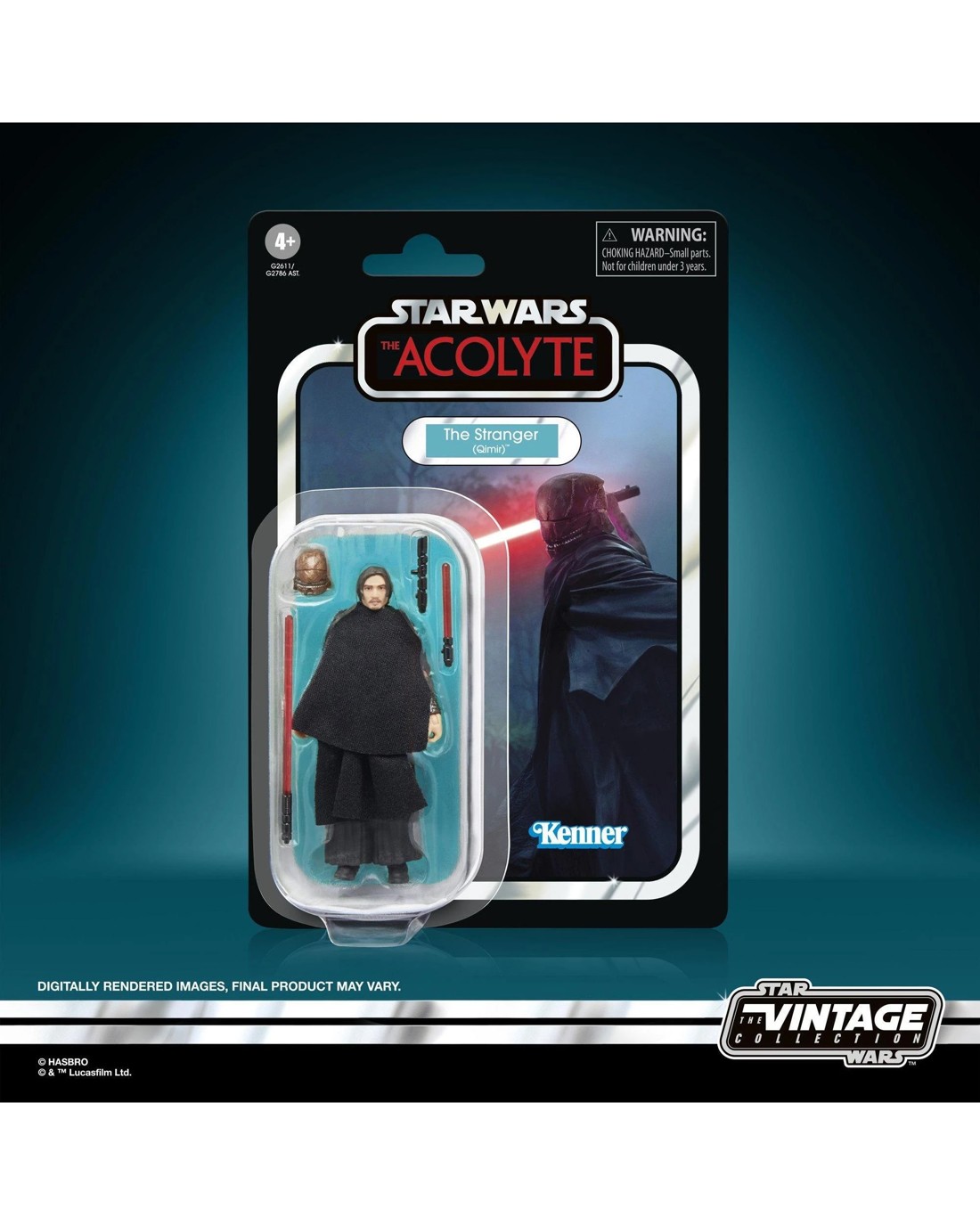 Celebrate the legacy of Star Wars with premium vehicles, playsets, and action figures from Star Wars The Vintage Collection. Inspired by the original line, these collectibles feature premium detail and design across product and packaging, as well as collector-grade deco that fans have come to know and love. May the Force be with you! Based on The Stranger (Qimir) from Star Wars: The Acolyte, this 3.75-inch-scale figure makes a great addition to any fan's collection. Figure comes with long and short red Lightsabers™, unlit hilt, and interchangeable helmet. Figure is a 3.75 inch (9.5 cm) scale for ideal display or play. Ages 4 +