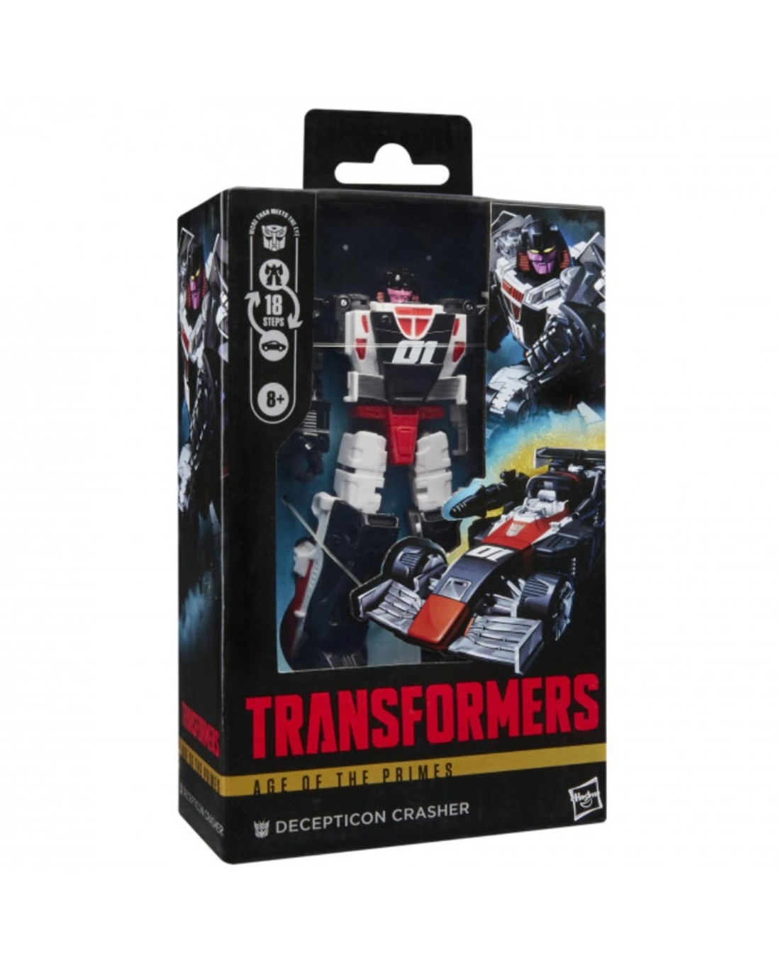 Unite your favorite characters from across the world of Transformers robots into your collection with the Transformers Age of the Primes Deluxe Class Decepticon Crasher action figure! This 5.5-inch Decepticon Crasher action figure converts between robot and sports car modes in 18 steps. Includes 2 blaster accessories that attach in both modes. The Decepticon Crasher figure is inspired by the character from the Transformers universe and features articulated head, arms, and legs for awesome action poses. Transformers: Age of the Primes opens up the world of the Primes, the very first bots in Transformers mythology, a pantheon of Thirteen beings, each with a unique ability and personality. Every battle, every bot, and every power in the Transformers universe can be traced back to one of The Thirteen. Collect and combine different characters to create your ideal Age of the Primes lineup. Ages: 8 +