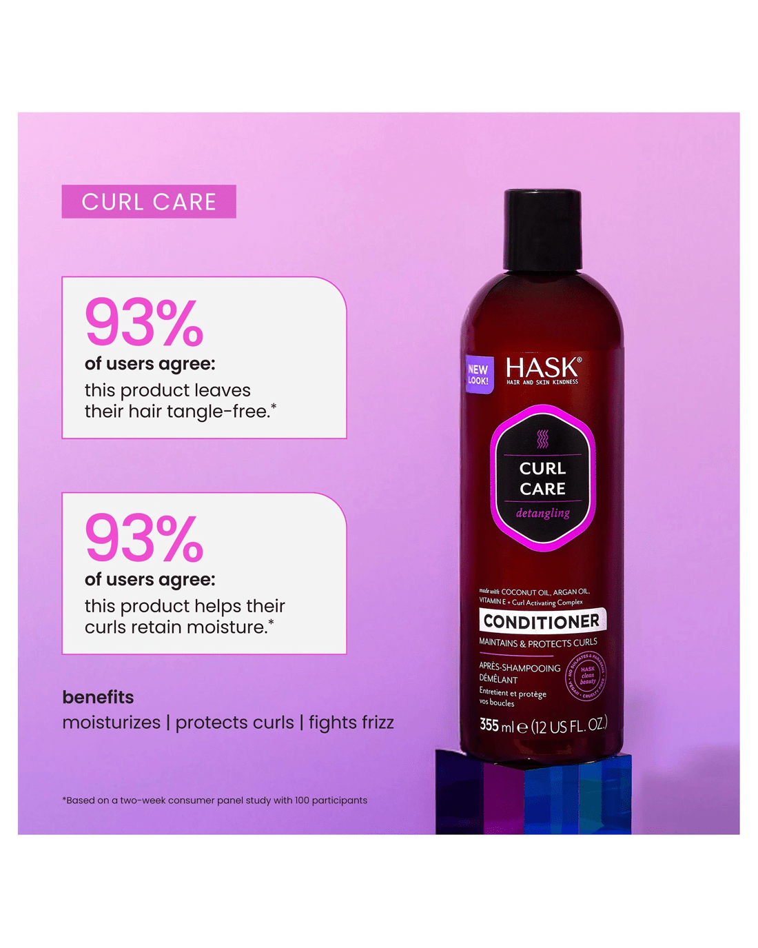 Sold by TargetHask Curl Care Detangling Conditioner, Coconut Oil Argan Oil Vitamin E and Curl Activating Complex - 355ml - Multi